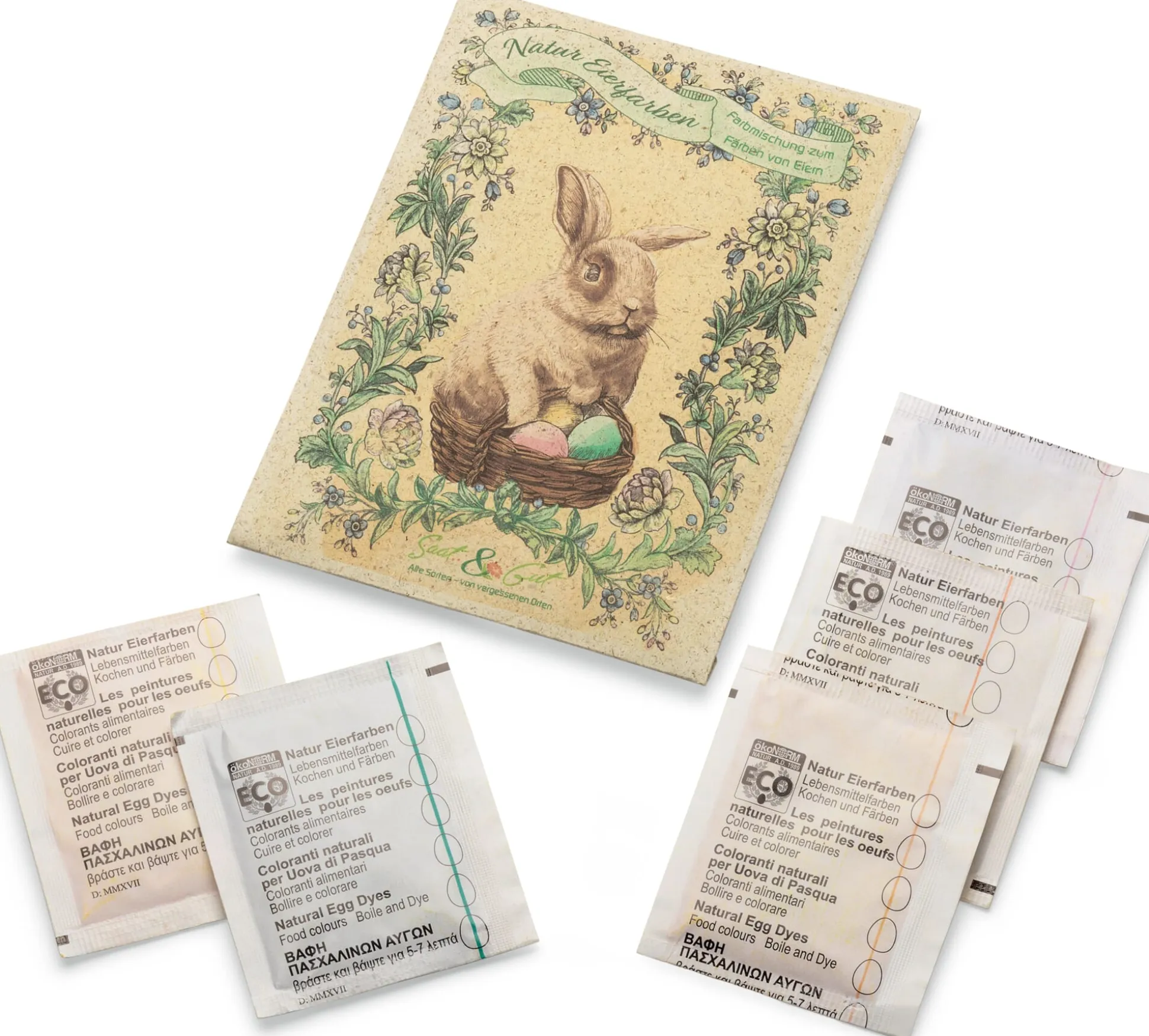 … das ist quasi ein Naturgesetz (schon aus Tradition). Bunt und gesund, könnten wir ergänzen, und färben unsere Eier mit reinen Naturfarben. Um nicht umständlich Zwiebeln, Rotkohl und Spinat zum Färben vorbereiten zu müssen, greifen wir auf diese Natur-Eierfarben zurück. Sie enthalten die natürlichen Farbstoffe Kurkumin, Echtes Karmin und Chlorophyllin – und diese Farbstoffe genügen vollauf, um Ihre Eier in vergleichsweise helles, doch sattes Rot, Gelb, Grün, Orange oder Pink zu tauchen. Und da kein Ei dem anderen gleicht – raue oder glatte Schale, unterschiedliche Brauntöne, Einsprengsel und so weiter –, werden auch die gefärbten Eier leicht variierende Farbnuancen annehmen. Lassen Sie sich nicht beirren: Manche Farben nehmen während des Abkühlens noch an Intensität zu.