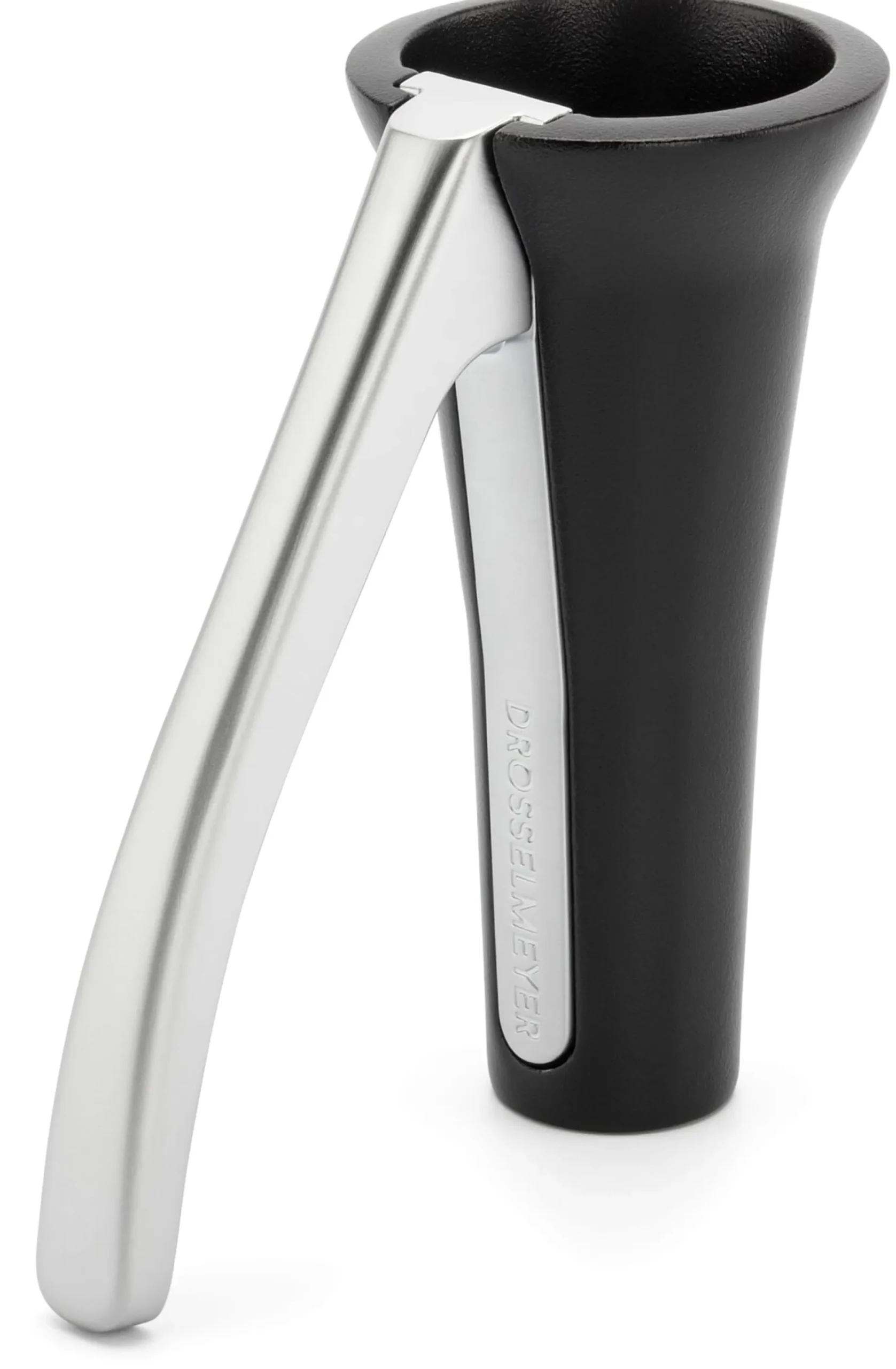 Geniale Mechanik: Der DROSSELMEYER öffnet effizient jede Art von Nüssen. Selbst die wirklich harten Nüsse wie Macadamia oder Mandeln werden mit reduziertem Kraftaufwand geknackt. Wie das funktioniert? Der Nussknacker besteht aus drei Bauteilen – zwei Hebelelemente und der konische Metallkörper, der die Nüsse aufnimmt. Diese Bauteile wirken auf so perfekte Weise miteinander, dass das Öffnen der Nüsse ein Kinderspiel ist. Die Segmente lassen sich leicht demontieren und reinigen, die Bedienung erfolgt mit einer Hand. Die Hebelkraft lässt sich dabei so fein dosieren, dass die Frucht erhalten bleibt und nicht zerquetscht wird. Durch die nach außen abgeschirmte Mechanik sind Verletzungen der Hand nahezu ausgeschlossen. Die Bruchstücke der geknackten Nüsse sammeln sich im trichterförmigen Gehäuse, fliegen also nicht unkontrolliert durch die Gegend. Der von zwei schwedischen Ingenieuren erdachte Nussknacker wird in der Heimat der Ideengeber – in Schweden – gefertigt.