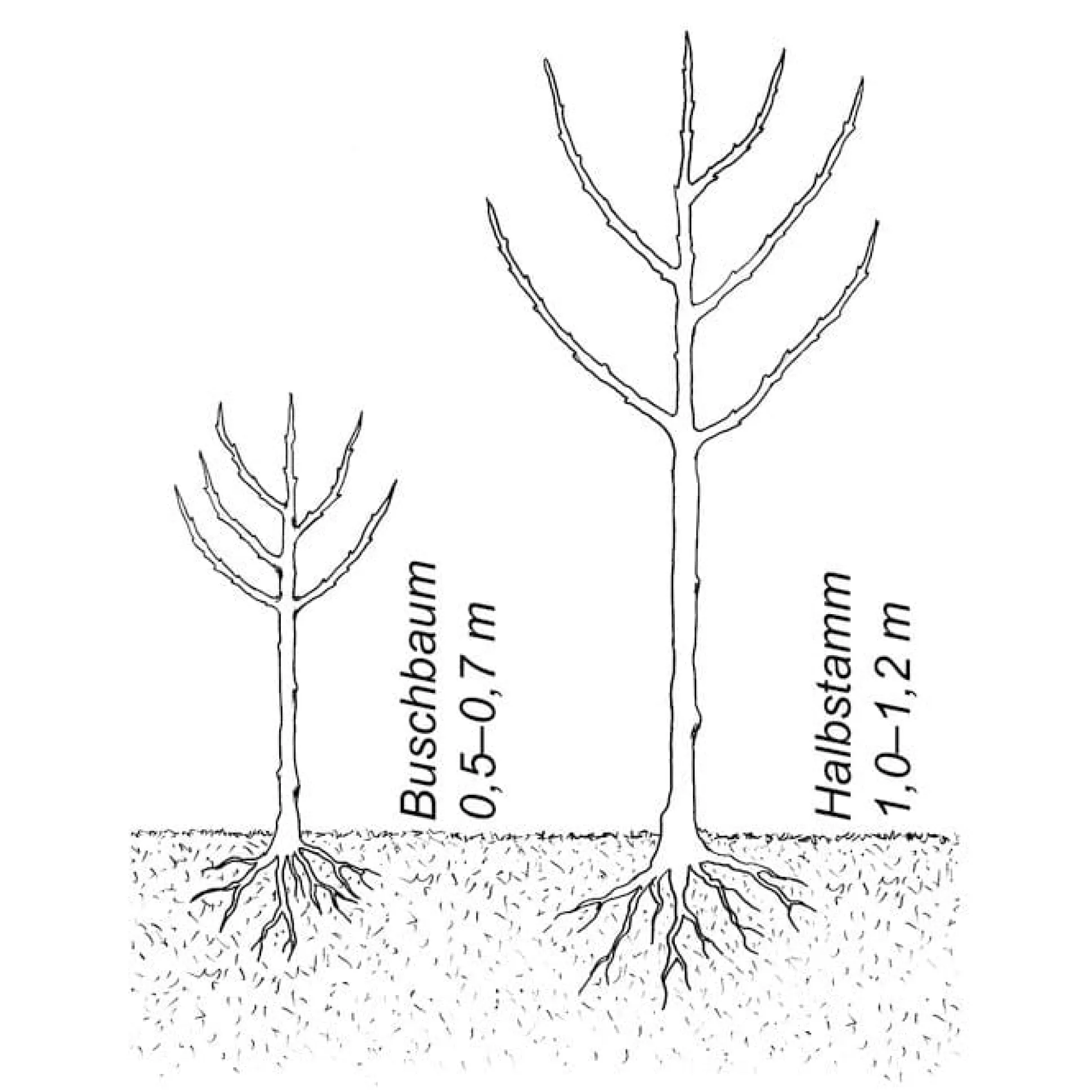 Halbstämme liefern wir als kräftige, vier- bis fünfjährige Pflanzen.