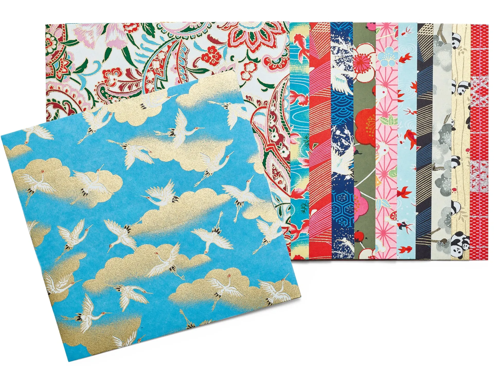 Vor mehr als 2.000 Jahren wurde in China das Papier erfunden. Von dort brachten es Mönche im 7. Jahrhundert nach Japan. Ob sie dabei auch die Kunst des Papierfaltens mitbrachten, ist unklar, unstrittig ist dagegen, dass die Japaner die einzigen sind, die das Papierfalten zu einer ausgeklügelten Kunstform verfeinerten – dem Origami (vom japanischen oru = falten und kami = Papier). Ausgangspunkt ist dabei stets ein quadratisches Blatt Papier, das ohne Hilfsmittel zu zwei- oder dreidimensionalen Objekten gefaltet wird. (Wird es wieder entfaltet, darf es weder Klebestellen noch Schnitte aufweisen.) Dabei gibt es eine Reihe unterschiedlicher Falttechniken wie die Berg- und Talfalte, die Quetschfalte, die Zick-Zack-Faltung oder die Blütenblatt-Faltung. Bei den Formen und Objekten, die man dabei nachbildet, sind der Phantasie kaum Grenzen gesetzt. Es beginnt mit den klassischen, seit Jahrhunderten überlieferten Grundformen – Wasserbombe, Vogel, Frosch und Windmühle –, die ihren Vorbildern nicht bis ins Detail ähnlich sehen, dafür aber mit 10 bis 30 Faltschritten auskommen, und endet bei komplexen, detailgenauen Objekten, die ihr Vorbild so lebensnah wie möglich abbilden und dazu bis zu 300 Faltmanöver benötigen. Mittlerweile hat man auch hierzulande die gleichzeitig konzentrationsfördernde und entspannende Wirkung des Origami erkannt. Vor allem, weil es einfach Spaß macht, beim Falten der Objekte nicht nur spielerisch die kreativen, künstlerischen Fähigkeiten zu fördern, sondern auch das mathematische Verständnis und das räumliche Vorstellungsvermögen zu schulen. Für den Selbstversuch bieten wir Ihnen zwei unterschiedliche Papiere mit klassischen Mustern an, die selbstverständlich aus Japan kommen.