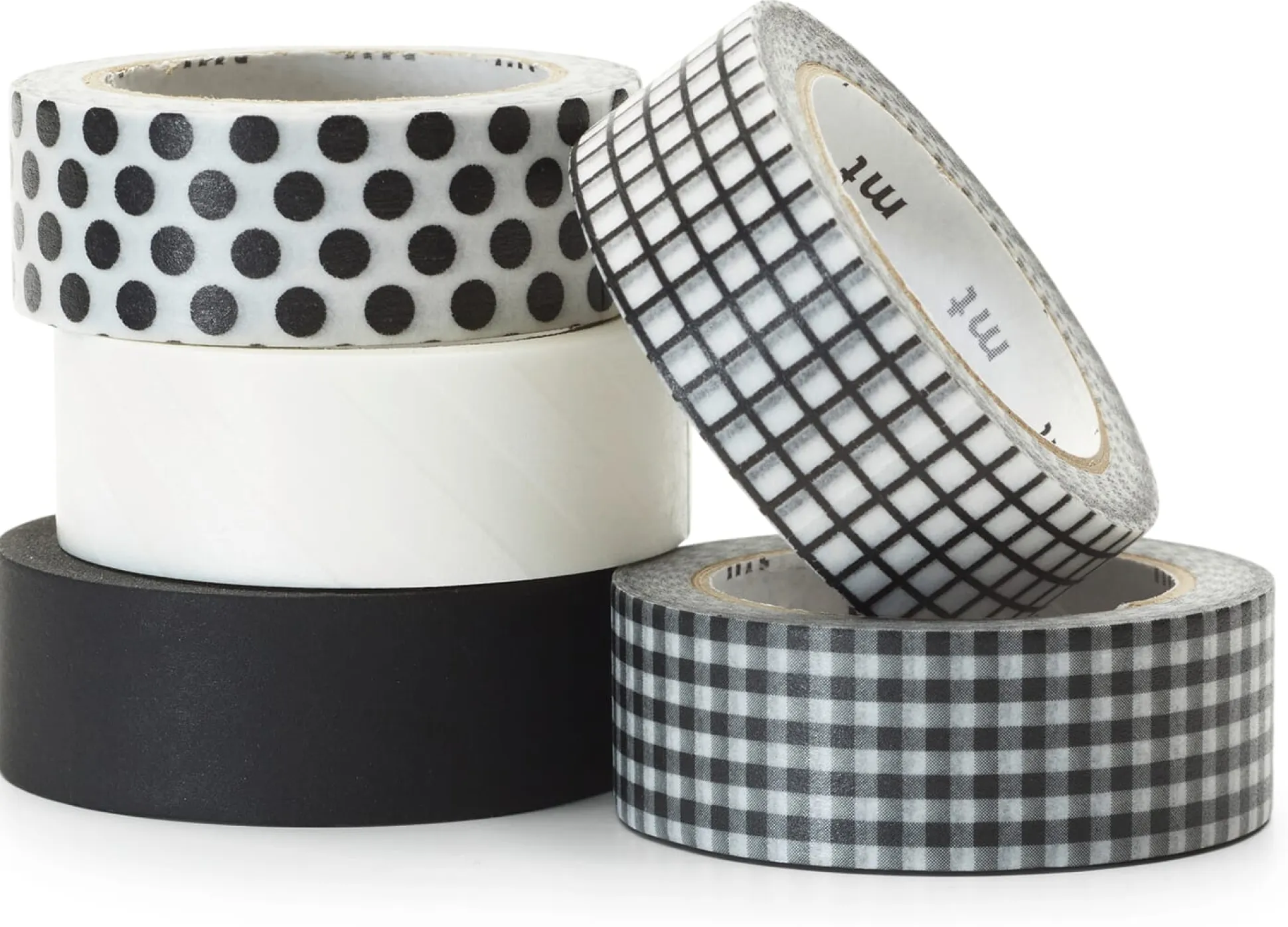 Manchmal brauchen wir es monochrom: Japanisches Klebeband aus Reispapier in einer eigens für MAGAZIN zusammengestellten Kombination in Schwarz und Weiß. Das Band lässt sich von der Rolle leicht abreißen, haftet als Markierung auf Buch- oder Heftseiten, lässt sich dort rückstandsfrei entfernen und dient zum Verpacken, Dekorieren, Gestalten, Markieren, Beschriften, und vielen anderen Zwecken.