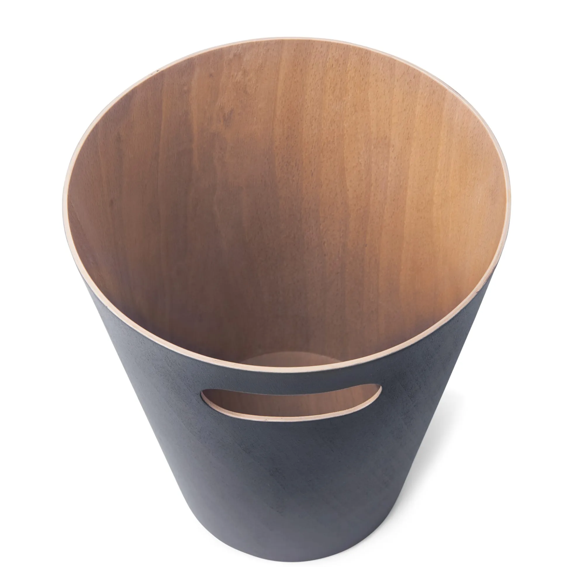 Aus feinem Sperrholz, innen naturfarben belassen, von außen in unterschiedlichen Oberflächen. Formschönes und diskretes kleines Handwerksstück. Mit einseitigem Tragegriff zur besseren Handhabung.