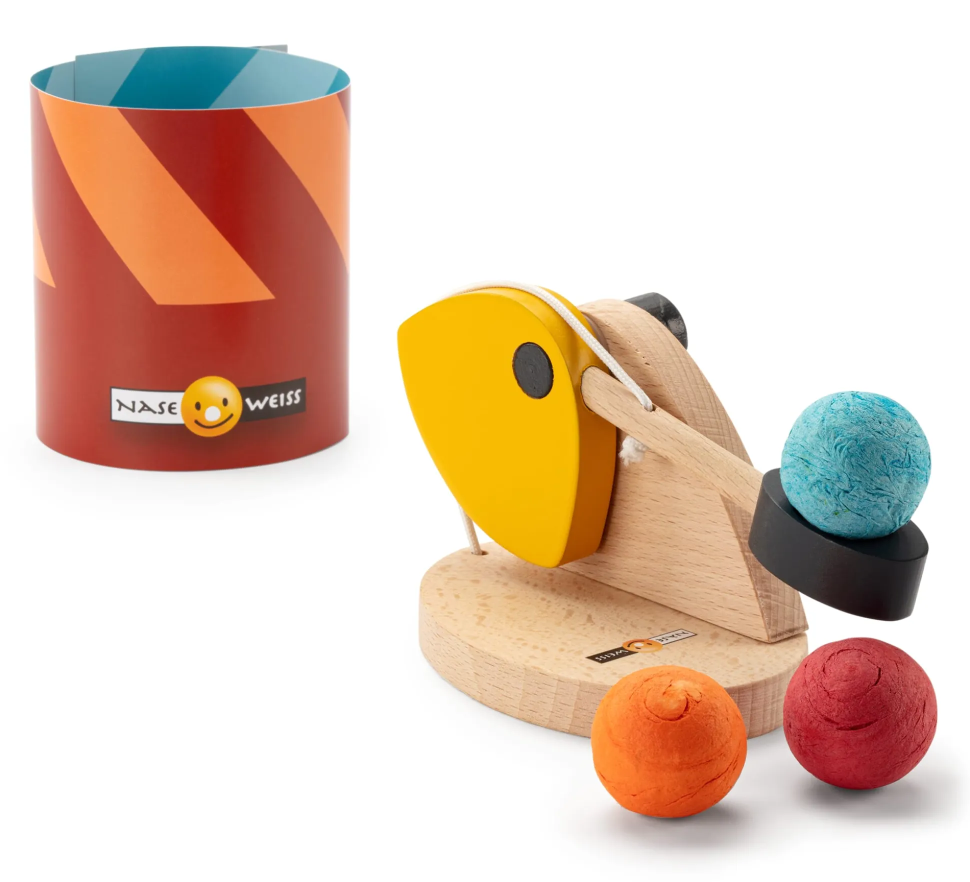 Die Holzspielzeuge des württembergischen Herstellers Naseweiss verbinden Freude am Spiel mit der Möglichkeit, Prinzipien aus Natur, Technik und Kultur kennenzulernen – vom physikalischen Prinzip des Pulsarmotors über eine einfache Lupe oder ein Lichtmikroskop bis hin zur Sonnenuhr. Sie laden zur intensiven Auseinandersetzung mit Natur und Umwelt ein, lassen gleichzeitig Raum für eigene Ideen und Entdeckungen und fördern kreatives Spielen.