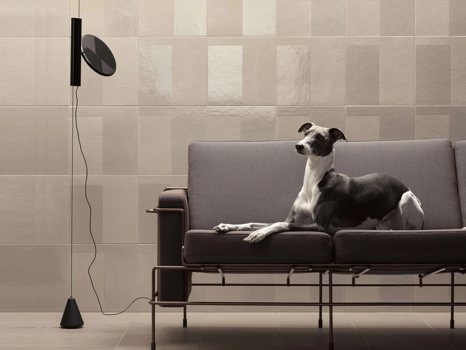 Hommage von Konstantin Grcic an den Altmeister des Produktdesigns: Inspiriert von der ikonischen Grundform der Leuchte Parentesi von Achille Castiglioni, trägt die OK LAMP einen schön geformten Leuchtenkopf mit zeitgenössischer, energiesparender und lichtstarker LED-Technik. Wie bei ihrem Vorbild von 1970 ermöglicht ein zwischen Decke und Boden mithilfe eines Gewichts gespanntes und durch ein Stahlrohr gezogenes Stahlseil die Höhenregulierung des um 360 Grad schwenkbaren Leuchtenkörpers. Der Leuchtenkopf ist aus lackiertem Aluminium, der Leuchtenkörper aus aluminiumbeschichtetem Polyamid gefertigt. Über einen Schalter mit Soft-Touch-Technologie dimmbar.