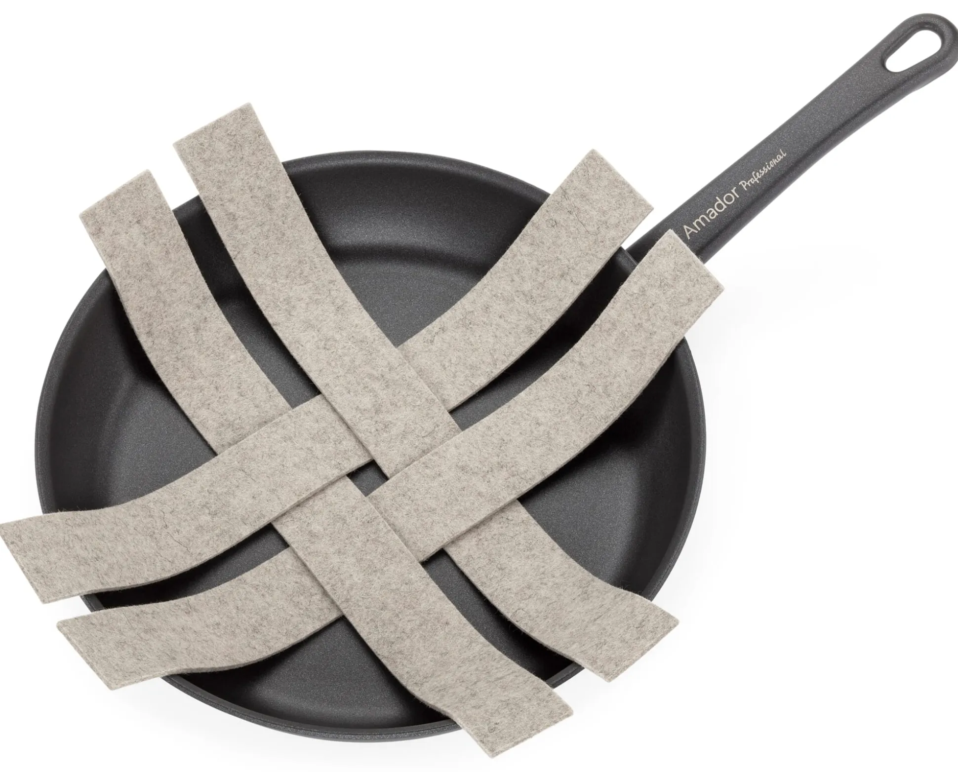 Wenn Pfannen und Töpfe in der Schublade oder im Regal ineinandergestapelt werden, besteht auch beim sorgsamsten Hantieren die Gefahr, dass die Beschichtung zerkratzt und Schaden nimmt. Oft werden dann als schützende Zwischenlagen Küchentücher aus Zellstoff zweckentfremdet. Praktikabler und langlebiger ist dieser Pfannenschutz aus reinem Schurwollfilz. Mit fünf Millimeter Stärke ist er dicker und bietet somit ein deutlich besseres Polster als die dünnen Tücher. Zwischen Pfannen oder Töpfe gelegt, schützt er als Stoßdämpfer die Beschichtung der Pfanne und (und auch die Ohren der Köch*innen). Der Pfannenschutz eignet sich für Pfannen bis 36 cm Durchmesser. Da die Filzstreifen lediglich in der Mitte verflochten sind, passt er aber auch in kleine Pfannen von 14 cm Durchmesser. Die Filzstreifen sind aus langlebiger, strapazierbarer Schurwolle, die dank ihrer Faseroberfläche über einen Selbstreinigungseffekt verfügt und schmutzunempfindlich ist.