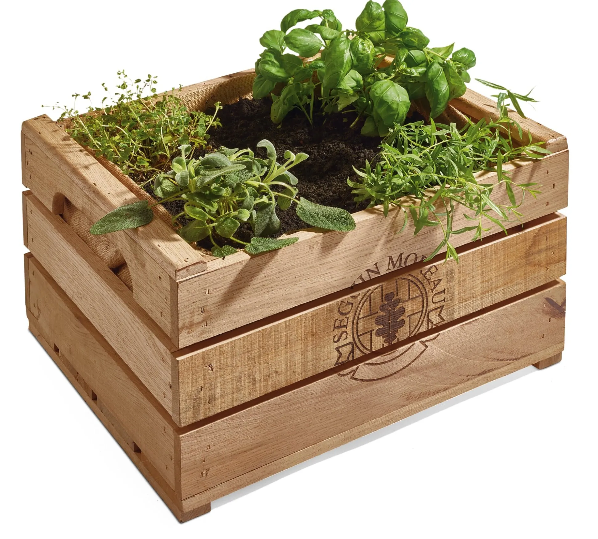 Aus Eichenholz, mit zwei seitlichen Tragegriffen. Ein ausreichend großes Stück Jute liegt jeder Kiste bei, das vor dem Befüllen mit Erde und Bepflanzen eingelegt wird. Gefertigt in Deutschland.