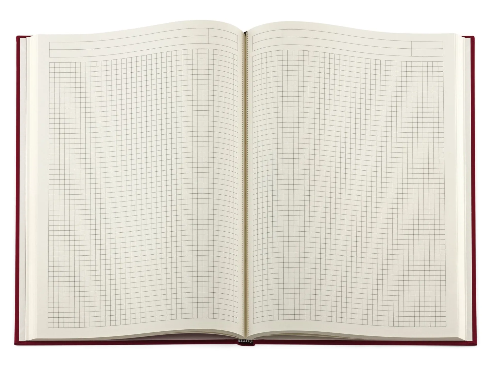 Lineatur: gerahmter zweizeiliger und -spaltiger Seitenkopf, gerahmtes kariertes Notizfeld.