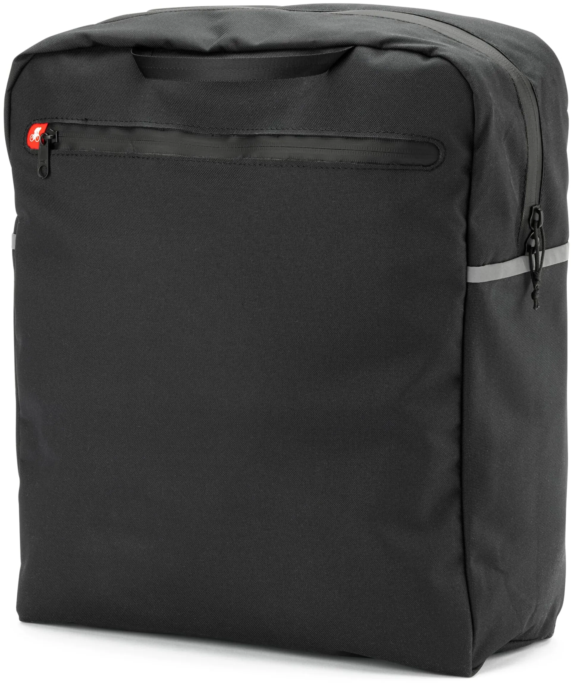Nicht immer geht es bei Gepäcktaschen fürs Rad um die optimale Unterbringung von Urlaubsgepäck. Die Radtasche KURIER beispielsweise ist etwas flacher und schlanker, besitzt eine definiertere Form und eignet sich ideal für die Wege in der Stadt. KURIER ist aus wasserfesten und recycelten Materialien mit einer hochwertigen textilen Oberfläche gefertigt und besitzt einen eingeschweißten wasserabweisenden Reißverschluss. Die Tasche ist in zwei Größen lieferbar. Die größere mit einem Volumen von 18 Litern verfügt über ein großes Hauptfach mit einem Extrafach für Dokumente oder Laptop sowie eine Frontasche mit Reißverschluss für Geldbörse, Smartphone, Stifte und Schlüssel. Die kleinere Größe mit 10 Litern Inhalt besitzt zwei kleine Einsteckfächer und zwei Extrafächer für Dokumente oder Laptop. KURIER FIX lässt sich mit fest integrierten Beschlägen (Quick Lock 2 ®) mit einem Handgriff an üblichen Gepäckträgern montieren. An der Rückseite befinden sich zwei kleine Gurtschlaufen, an denen der mitgelieferte Tragegurt befestigt werden kann. Eingearbeitete Reflektorstreifen sorgen für erhöhte Sichtbarkeit im Verkehr. Gestaltet und handgefertigt in Berlin.