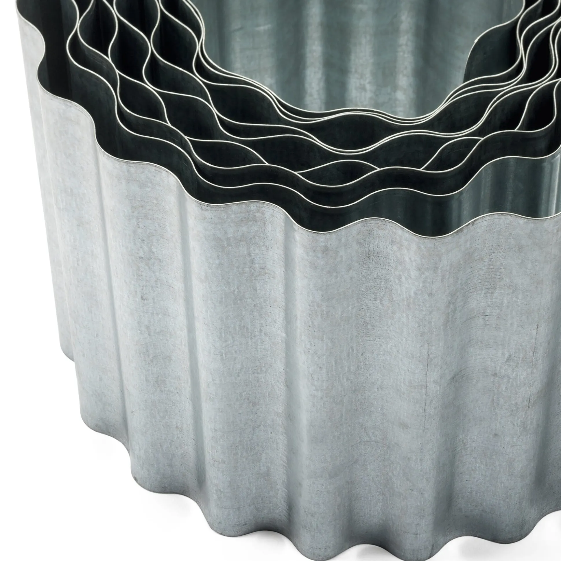 Sie ist robust, sehr stabil und kann, da aus einem Streifen Wellblech gefertigt, trotzdem in jede Richtung gebogen werden. Wenn also leichte Schrägen im Gelände auf Dauer ausgeglichen, Stufen befestigt oder Wege konturiert werden sollen, ist diese die Rasenkante der Wahl. Sie ist einige Zentimeter höher als die anderen Rasenkanten in unserem Sortiment und deshalb etwas aufwendiger im Einbau.