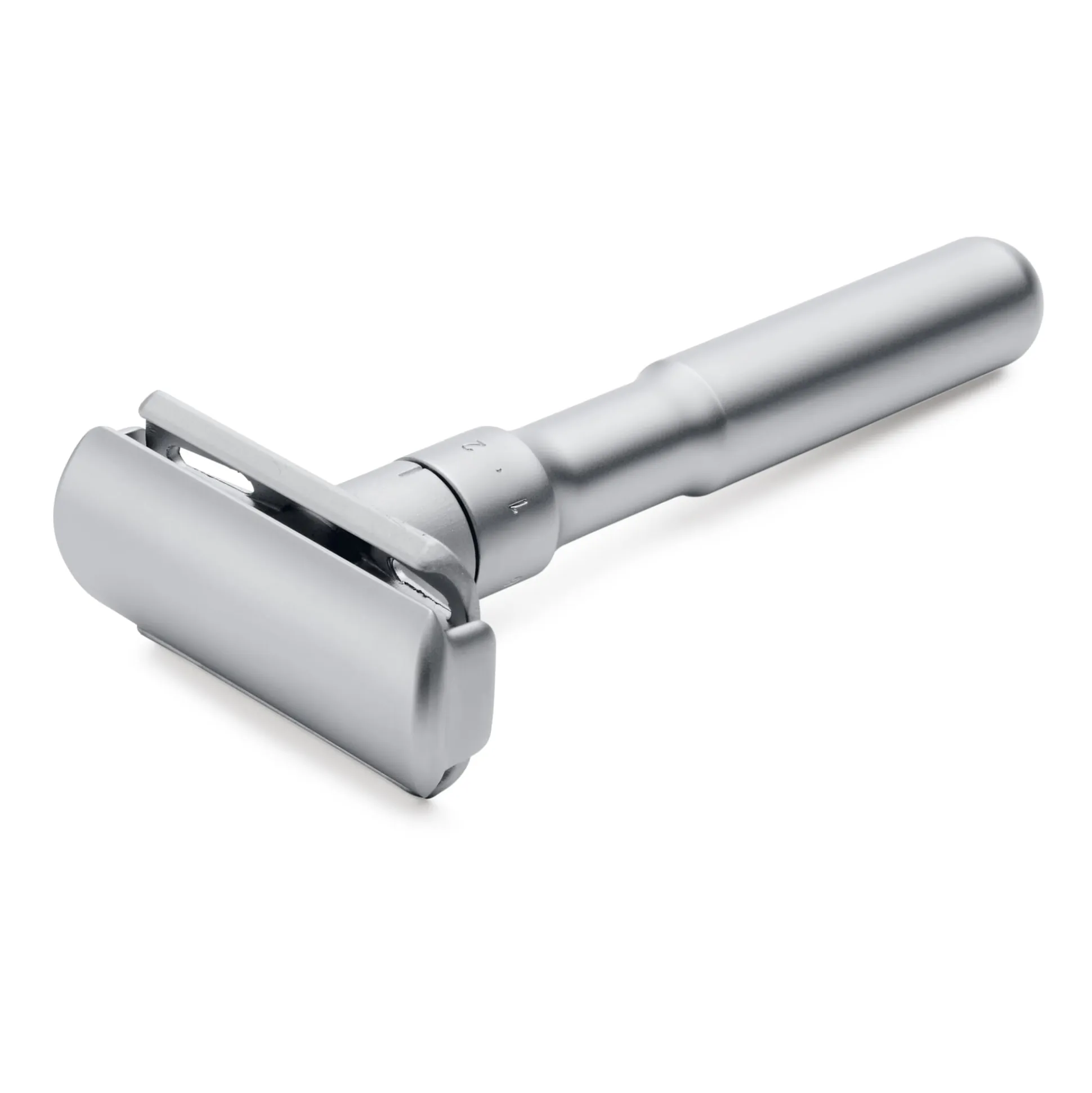 Dieser Rasierhobel von Merkur ist nicht in der historischen, sondern in einer modernen Form gearbeitet und hat glatte, mattierte Oberflächen. Wie bei den bewährten Modellen erlaubt die Konstruktion eine exakte Klingen-Feineinstellung und auch der Seifenspalt kann eingestellt werden. Die Grifflänge von 9 cm gewährleistet eine sichere und gut balancierte Führung. Passend dazu bieten wir auch einen Rasierpinsel an und einen Ständer.