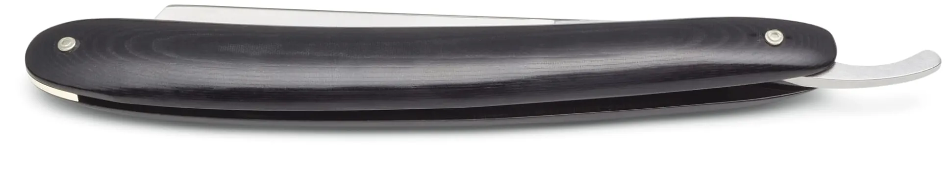 Mit seiner extrem scharfen, vollhohl geschliffenen Klinge aus Kohlenstoffstahl schneidet das Rasiermesser das Barthaar tief und gründlich, dabei gleichzeitig sauber und sanft ab. Für die Pflege sollten Sie beachten, dass die Klinge nicht rostfrei ist. Die Verwendung von Kohlenstoffstahl hat jedoch zwei Vorteile: 1. er lässt sich besser härten und anlassen (vergüten) als Edelstahl und die Klinge schärfer zurichten und 2. die Klinge bleibt länger schnitthaltig. Unterstützen können Sie dies mit der Verwendung eines Abziehriemens aus Leder. Nach der Rasur sollte das Rasiermesser zunächst mindestens einen Tag ruhen, da sich die Klinge in dieser Zeit von selbst wieder aufrichtet. Danach mit ganz wenig Druck die Klinge ledern. Bei längerem Nichtgebrauch empfiehlt es sich, die Rasiermesserklinge zu ölen, zum Beispiel mit Ballistol. Der Griff ist aus wasserresistentem Hartgewebe und damit sehr pflegeleicht. Er bildet ein gutes Gegengewicht zur Klinge, sodass das Messer ausbalanciert in der Hand liegt.