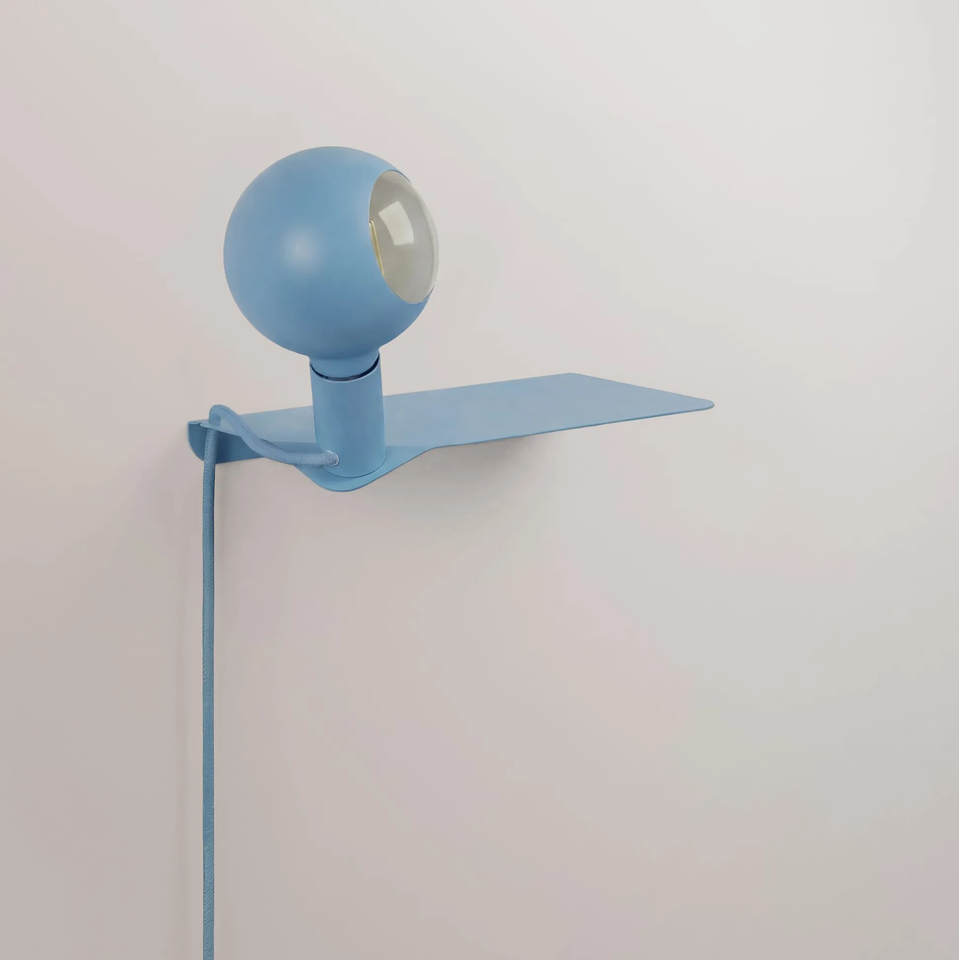 Das kompakte Regal aus farbig lackiertem Stahl trägt die typische, gebogene Ecke – das Markenzeichen des Herstellers Filotto. Eine Lampenfassung wird im passenden Farbton geliefert und lässt sich dank integriertem Magnet frei auf dem Regal oder sogar darunter sicher befestigen – ganz ohne Schrauben oder Klemmen. Ebenso leicht kann sie wieder abgenommen und an anderer Stelle positioniert werden. So entsteht ein Ensemble, das sich im Handumdrehen neu arrangieren lässt und doch stets ein stimmiges Ganzes bleibt. Ein italienischer Entwurf mit charakteristischer Farbpalette.