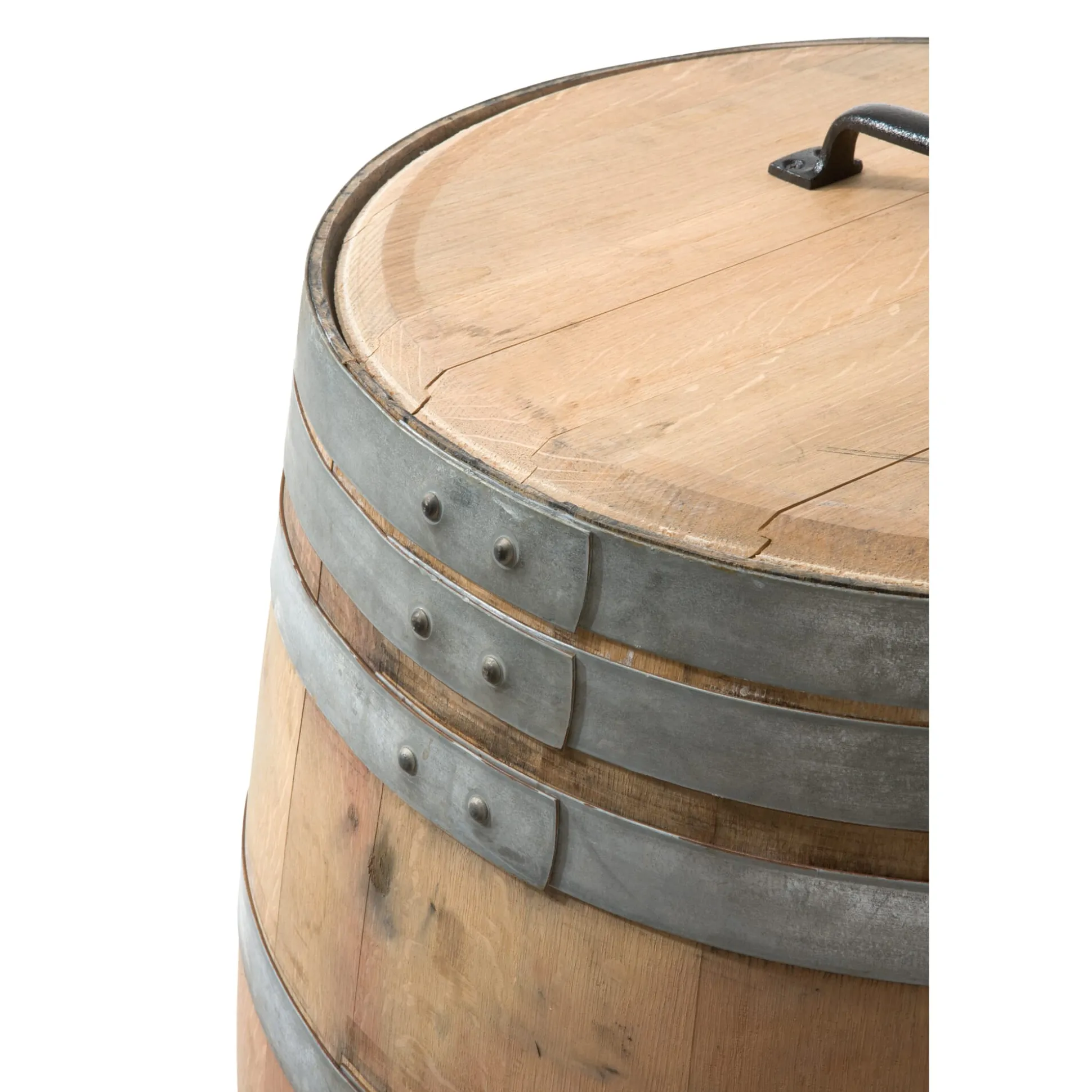 Bei unseren Holz-Regenfässern können die Herkunft, das Volumen und das Aussehen variieren. Mal stammen sie aus der Cognac- oder Armagnac-Produktion, mal waren es Wein- oder Whiskyfässer; mal ist das Holz etwas heller, mal, wie bei einem Cognac-Fass ohnehin, sehr dunkel. Die alten Barrique-Fässer sind innen vom Wein tief purpurrot gefärbt, dem Holz entströmt ein ganz außerordentlicher Duft nach Rotwein – oder nach Whisky, je nachdem, was vorher darin gelagert wurde. Von einem intensiven Cognac- oder Armagnac-Duft durchdrungen ist das Holz bei den großen Varianten.
