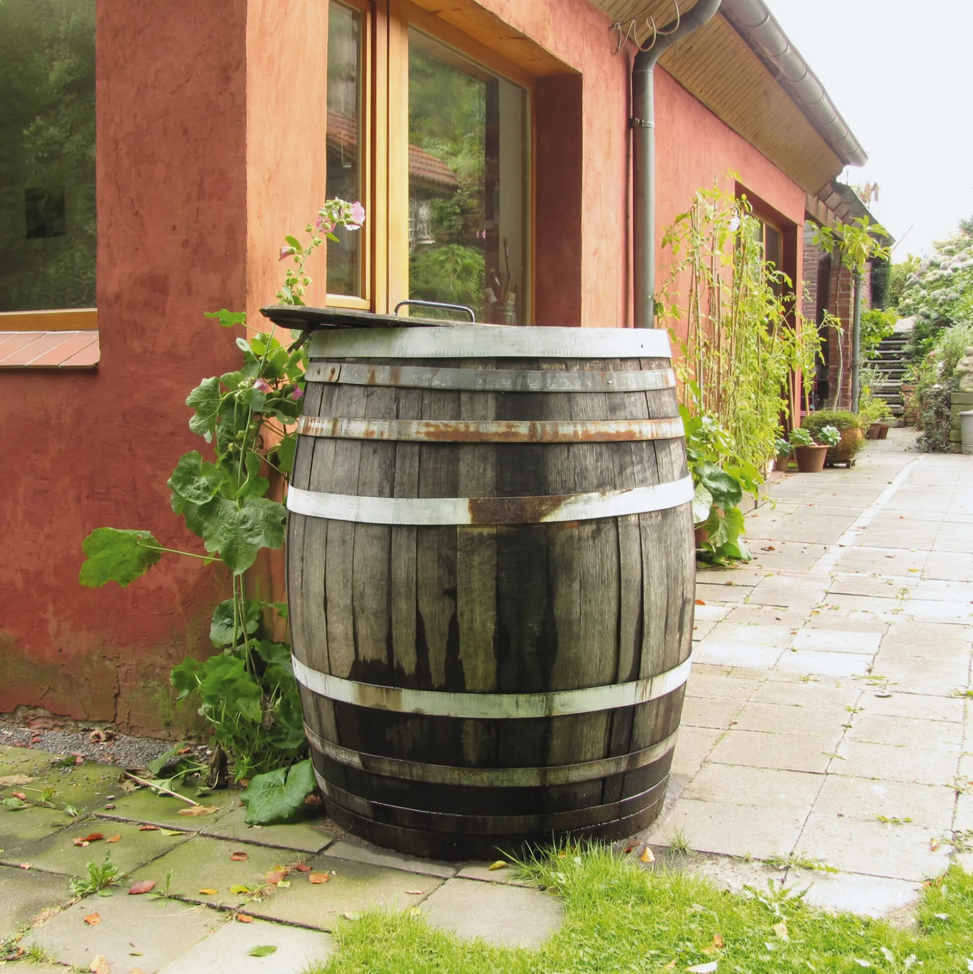 - Zum 225-l-Regenfass umgewidmet: Barrique-Fass