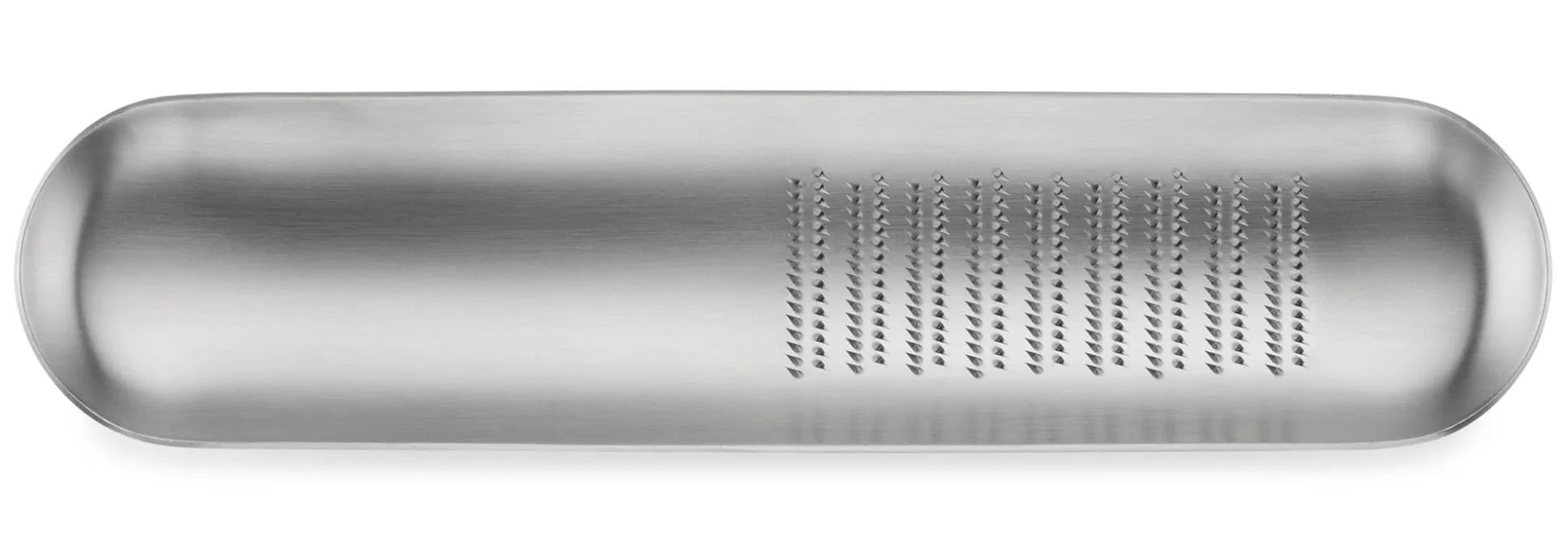 Die Reibe Oros ist einer traditionellen Wasabi-Reibe nachempfunden und aus hochwertigem Edelstahl gefertigt. Die Form ist geschlossen, damit die Säfte der zu bearbeitenden Produkte nicht verloren gehen. Zum Reinigen einfach mit fließendem Wasser abspülen.