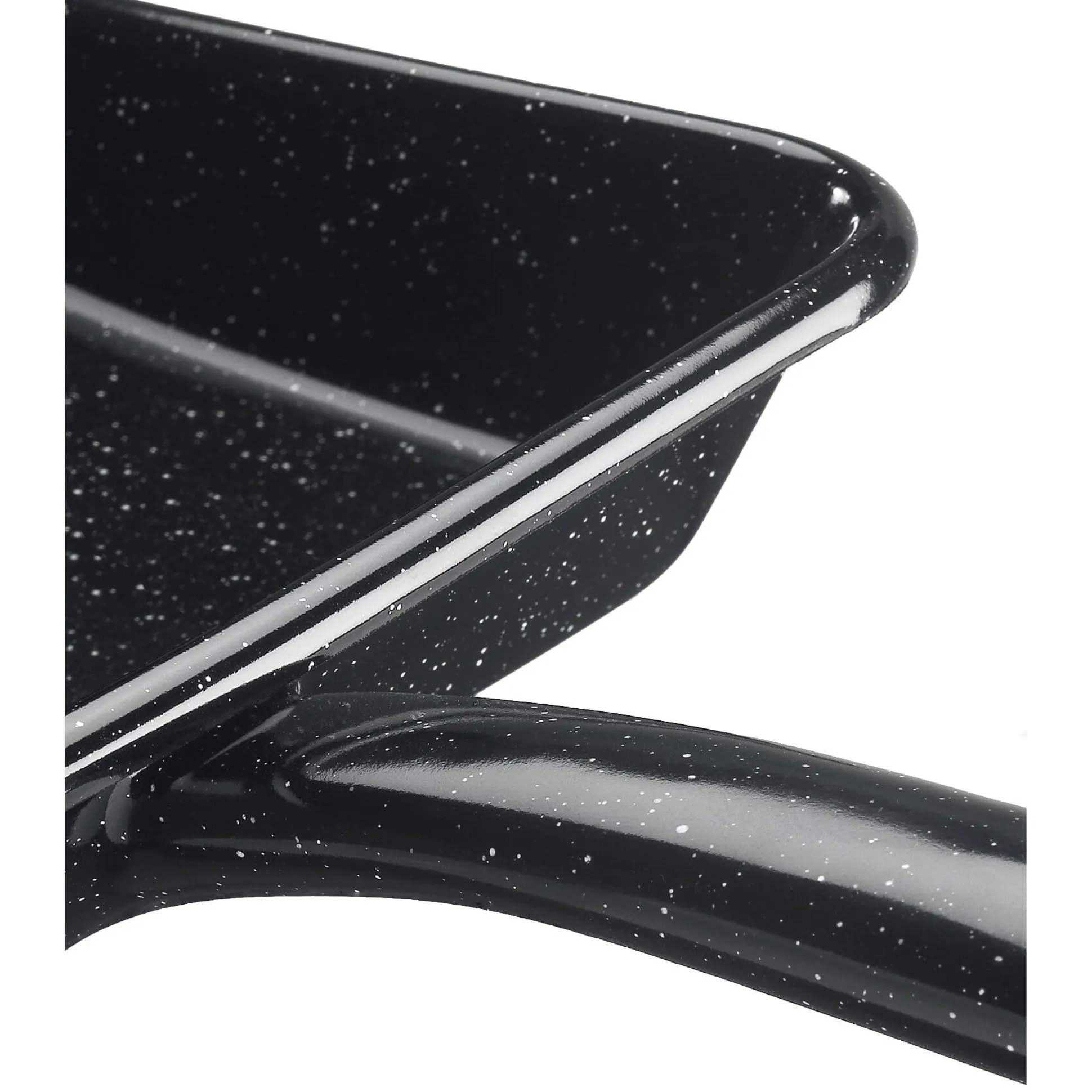 Vom Emaille-Spezialisten Riess in Österreich: ein klassisches, grundsolides Kehrblech aus nahtlos gezogenem Stahlblech, das bei 840 °C feueremailliert wird. Seine „Granit-Emaillierung“, die mit ihren hellen Pünktchen auf dem schwarzen Fond an Granit erinnert, zeichnet sich durch eine besonders glatte und kratzfeste Oberfläche aus, die auch gegenüber heißer Asche unempfindlich ist.