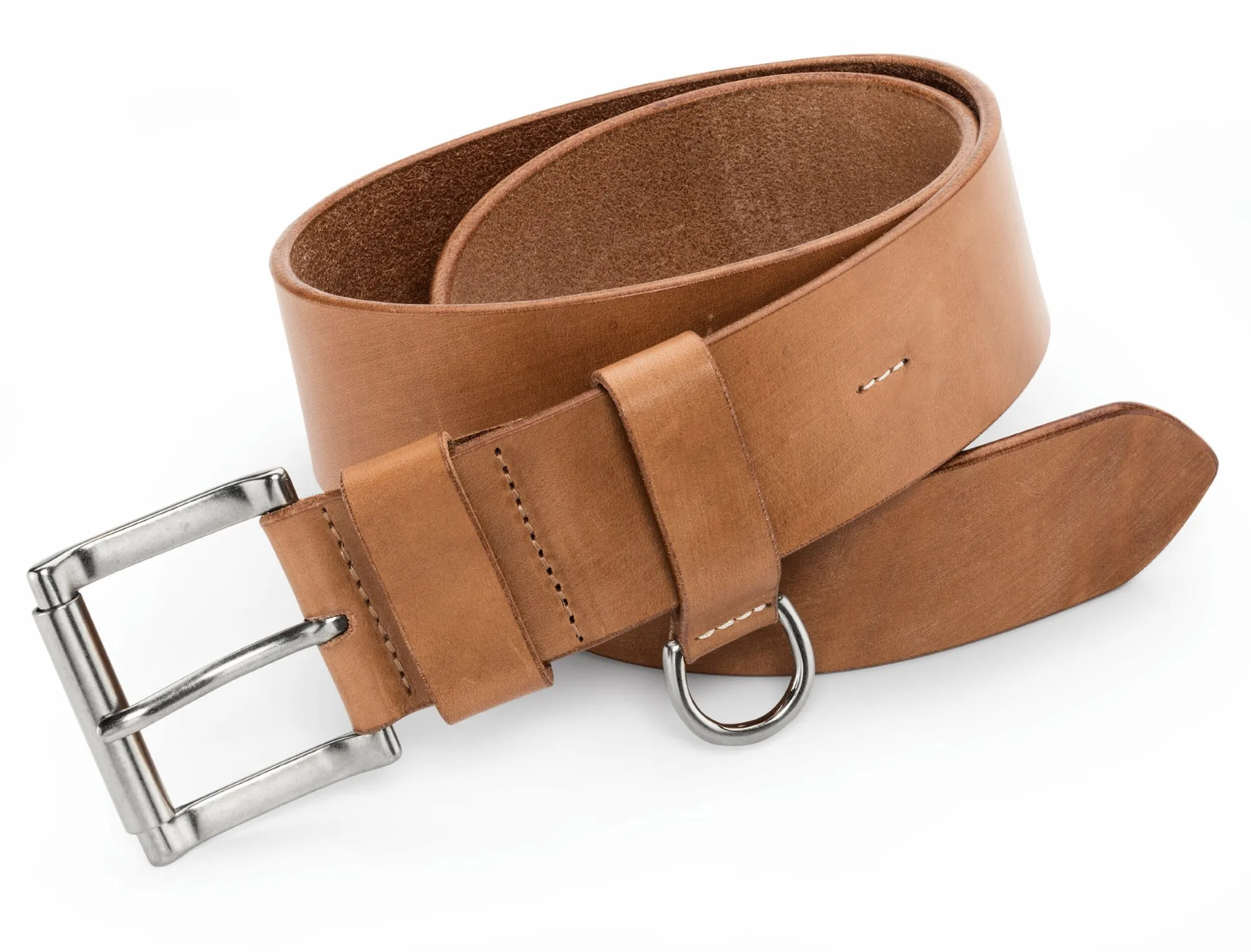 Einlagig. Rindleder (Stärke ca. 4 mm), vegetabil gegerbt. Schließe und D-Ring Messing versilbert. Hergestellt in Deutschland. Breite 4,5 cm.