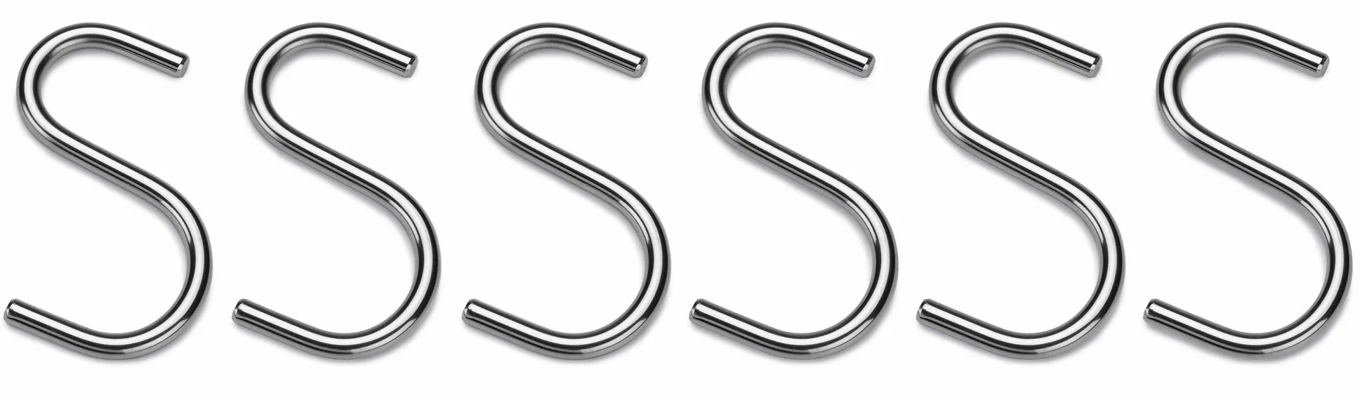 S-Haken für vielfältige Nutzung in Küche, Bad und Garderobe: Die asymmetrische Form – der eine Bogen schließt sich weiter als der andere – sorgt dafür, dass der Haken sich nicht bei normaler Nutzung von seiner Station löst.