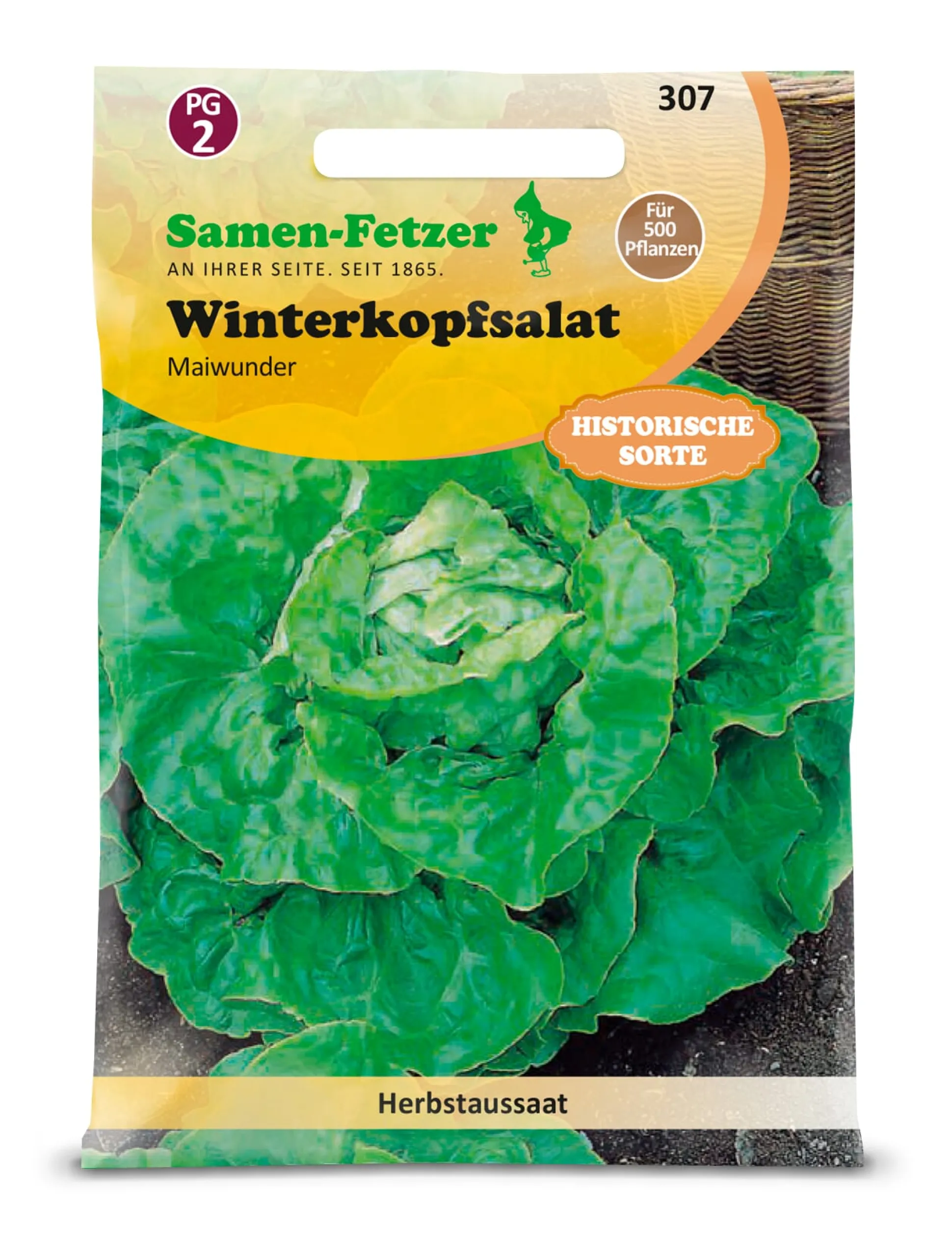 Ein winterharter Kopfsalat mit großen, festen Köpfen und dem vollen, aromatischen Geschmack von Butterkopfsalat. Die äußeren Blätter sind grün, das Herz zeigt eine eher gelbe Färbung.
