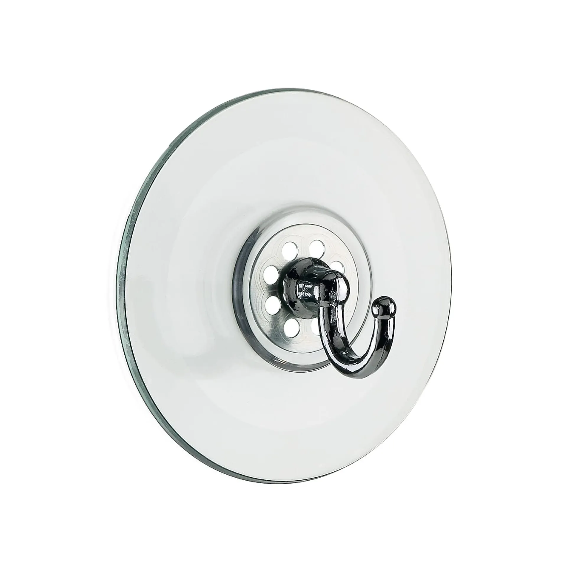 Sauger (7,5 cm Ø) aus transparentem PVC, mit Haken aus verchromtem Zamak.