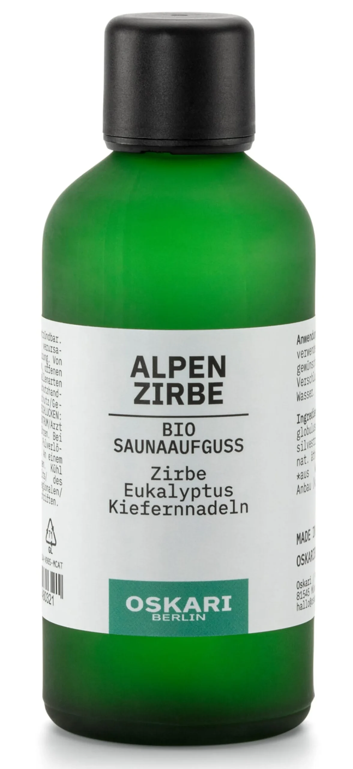 Inhaltsstoffe: ALCOHOL, EUCALYPTUS GLOBULUS, PINUS CEMBRA, PINI SILVESTRIS, LIMONENE