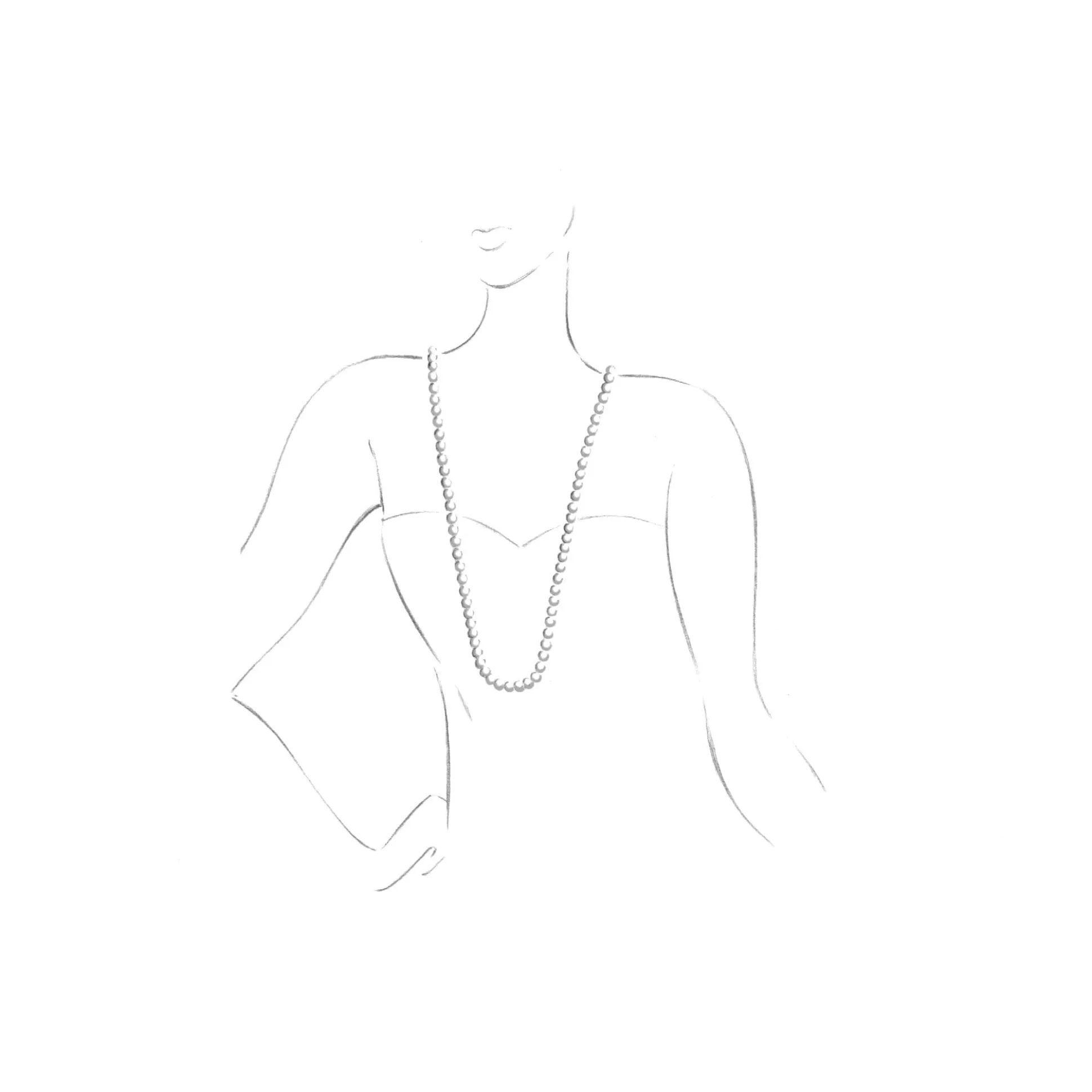 Ein Schmuckstück mit Geschichte: Zu Beginn des 20. Jahrhunderts begannen die Frauen, ihren Perlenschmuck nicht mehr nur eng am Hals anliegend zu tragen. Lange Ketten passten besser zu den fließenden Schnitten der neuen Kleider, sie wurden nabellang und weit fallend getragen. Niemand geringeres als Coco Chanel machte die Sautoir-Kette in den 1920er Jahren populär – klassisch zum „Kleinen Schwarzen“ als großzügig fallendes Collier, dreifach geschlungen und eng anliegend oder über einem weiten Ausschnitt in den Rücken hängend getragen. Für diese Kette, sie ist mehr als einen Meter lang, werden etwa 200 Süßwasser-Zuchtperlen aneinandergereiht. Die Sautoir-Kette kommt aus Pforzheim.