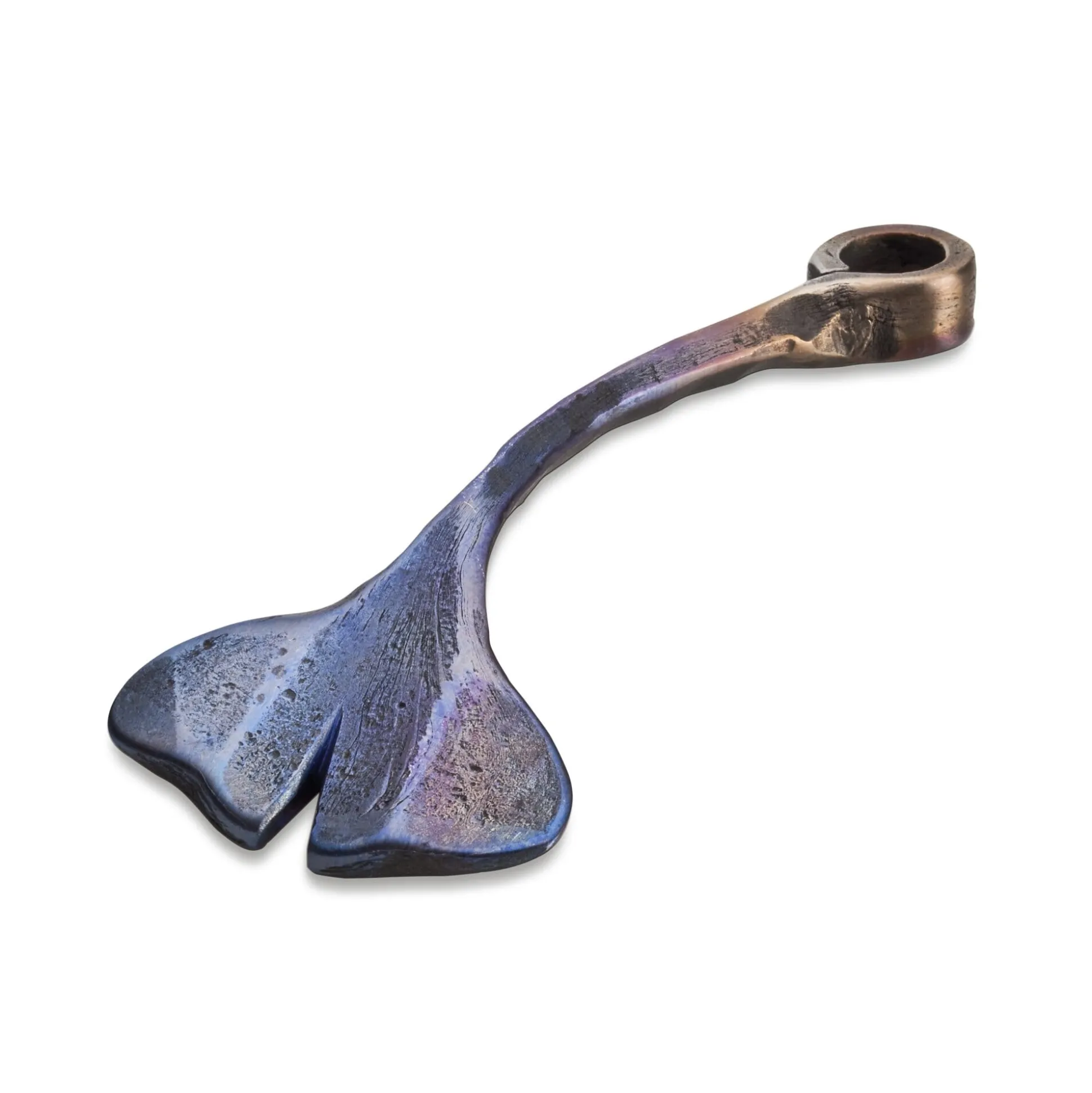 Man braucht ihn nicht unbedingt, und doch wird man ihn, ist man seiner erst einmal habhaft geworden, nicht wieder missen wollen: diesen kleinen Schlüsselanhänger aus geschmiedetem und abgebläutem Titan. Die Form des legendären Ginkgoblattes regt die Phantasie an, das leichte, warme Titan nimmt man auch gern in die Hand.
