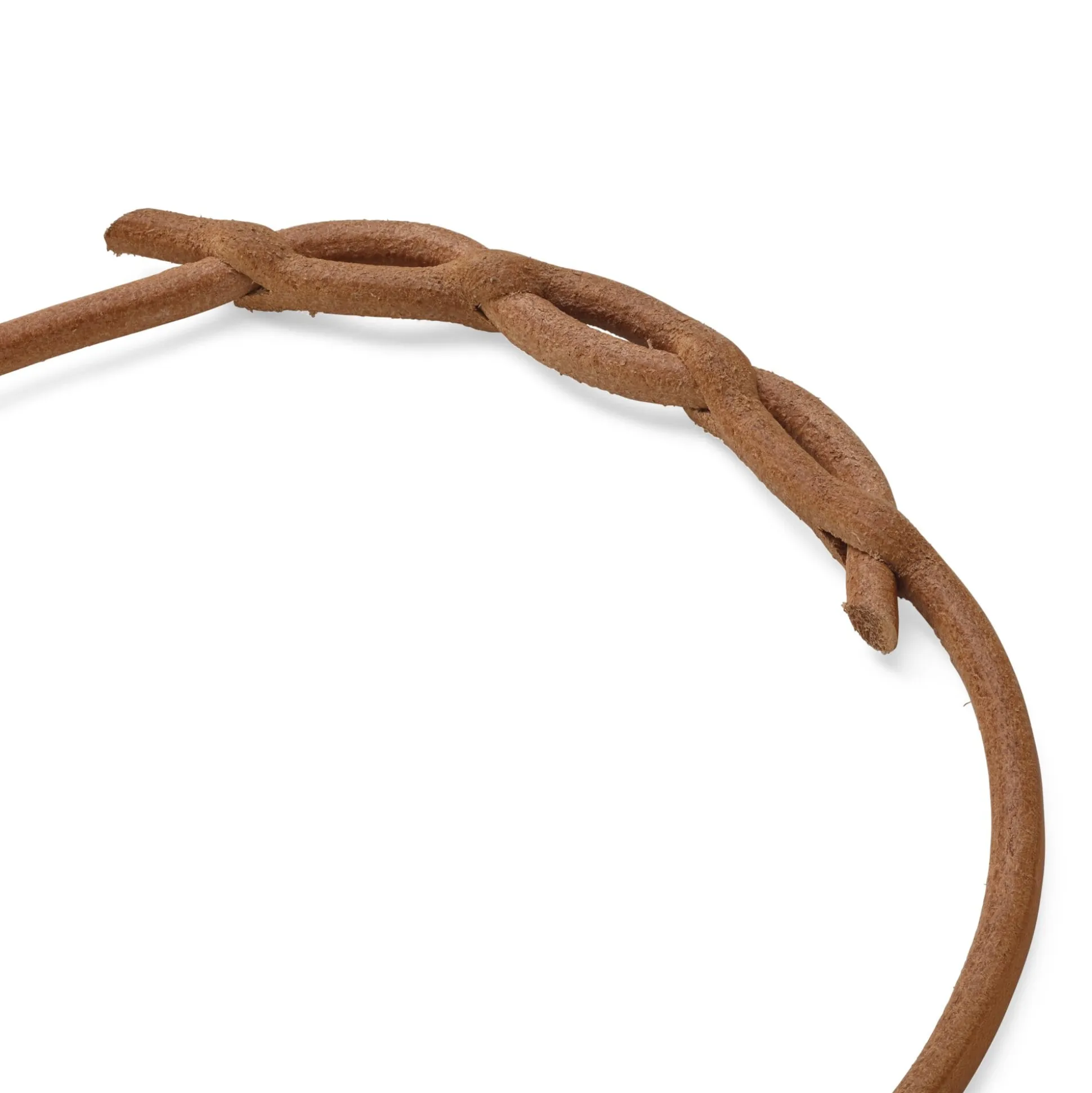 Rindleder (Stärke 5 mm), vegetabil gegerbt. Karabinerhaken (Länge 6 cm) aus vernickelter Zinkdruckgusslegierung. Hergestellt in Dänemark. Gesamtlänge 58 cm. Gewicht 40 g.