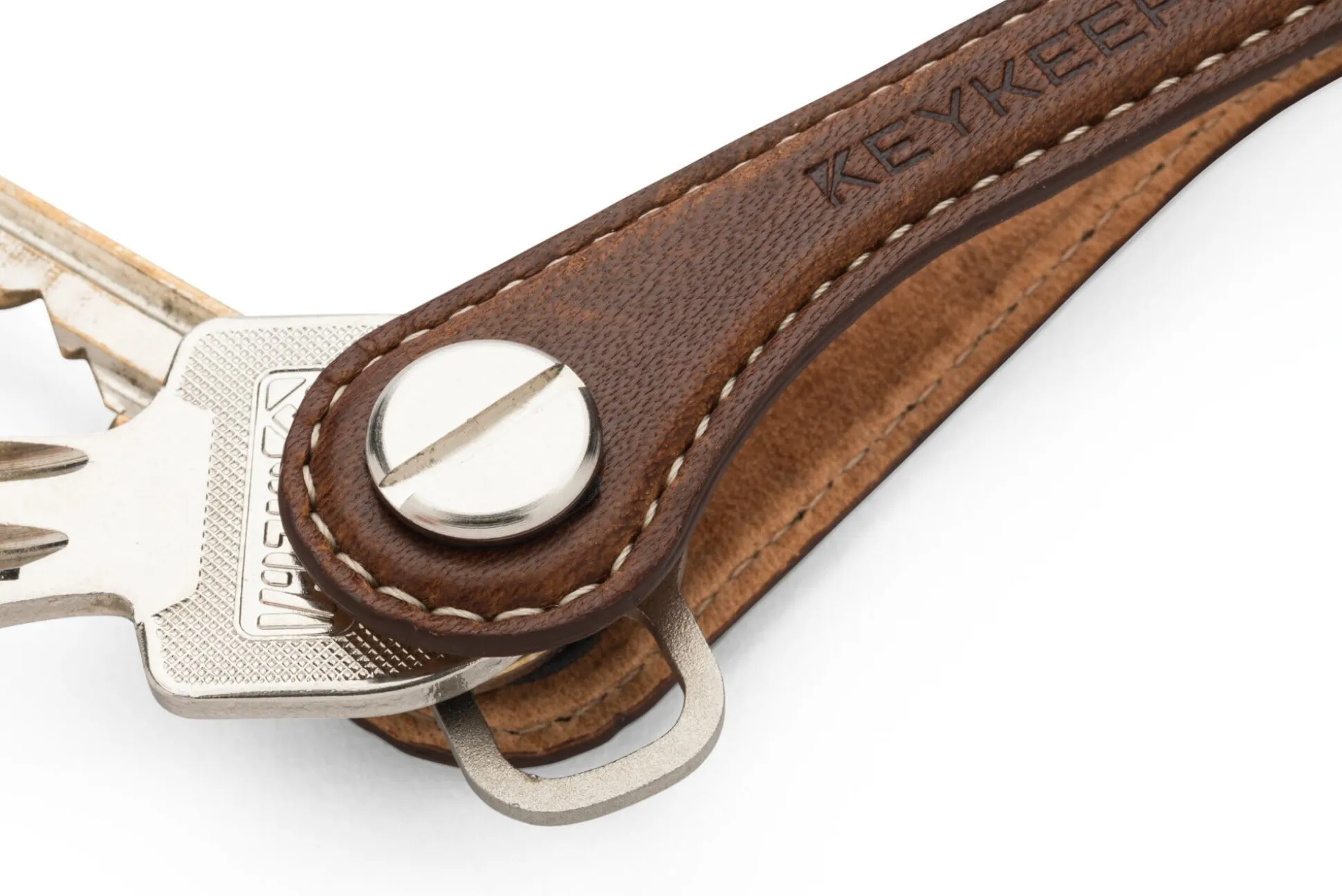 Edelstahl mit einem Bezug aus mit pflanzlichen Gerbmitteln gegerbtem Ecopell-Rindleder. 23 Trennscheiben und 4 Schraubenverlängerungen zur Montage der einzelnen Schlüssel liegen jedem Stück bei. Gewicht 40 g.