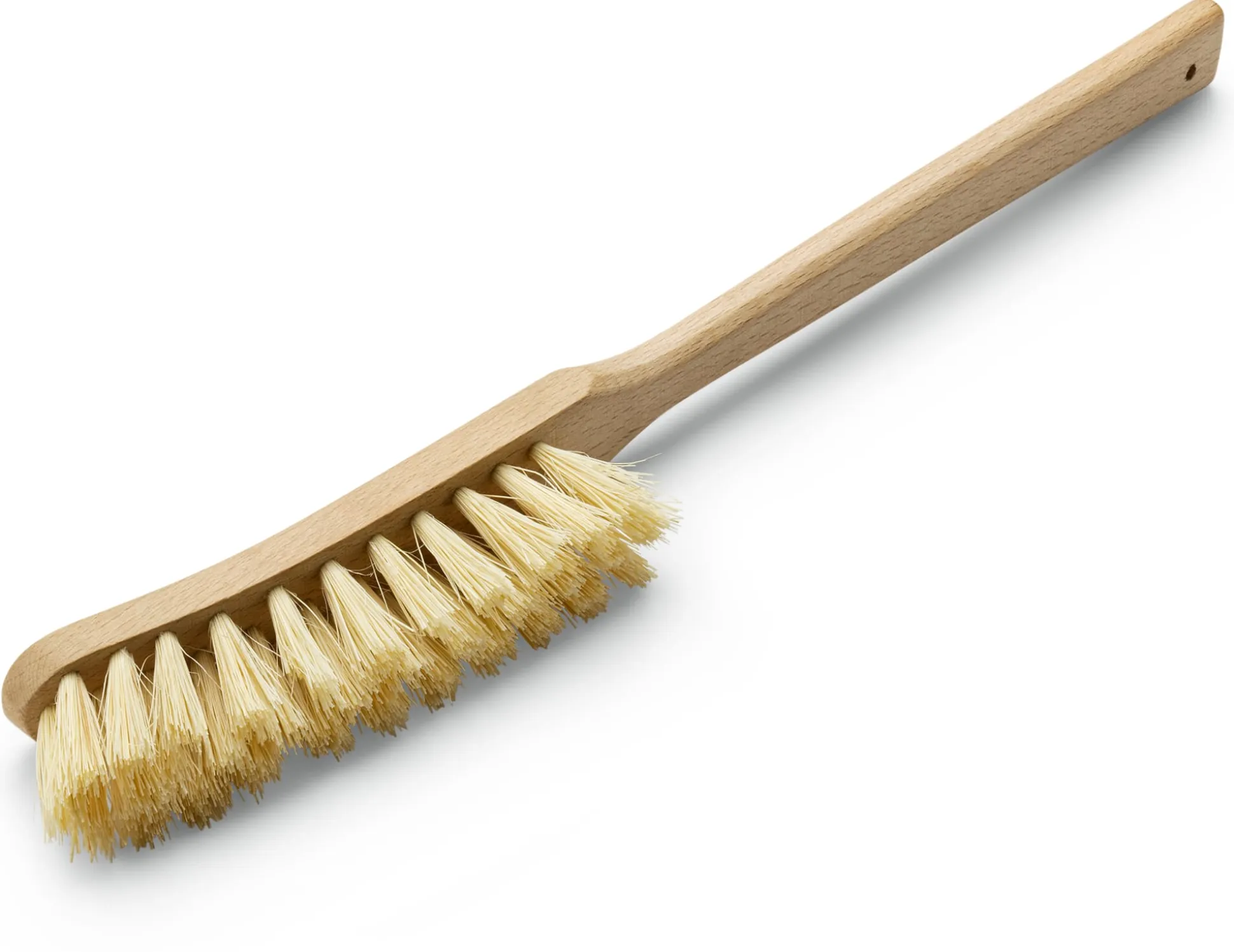 … oder Pendant zum Fugenkratzer: Mit dieser schlanken, handlichen Scheuerbürste rücken Sie dem Schmutz in Fugen, Ritzen und schmalen Zwischenräumen wirksam zu Leibe. Dafür sorgt ihr Besatz aus Fibre, so nennt man die Blattrippen der Agave. Die elastische, aber zähe Naturfaser ist sehr widerstandsfähig und unempfindlich gegen Säure, Lauge und Hitze. Korpus und Griff sind aus festem Buchenholz gefertigt, sodass Sie mit vollem Krafteinsatz schrubben können. Mit seinen abgerundeten Kanten liegt der Griff gut in der Hand. Und dank des leicht nach oben geschwungenen Bürstenkörpers lassen sich auch Ecken gut damit säubern.