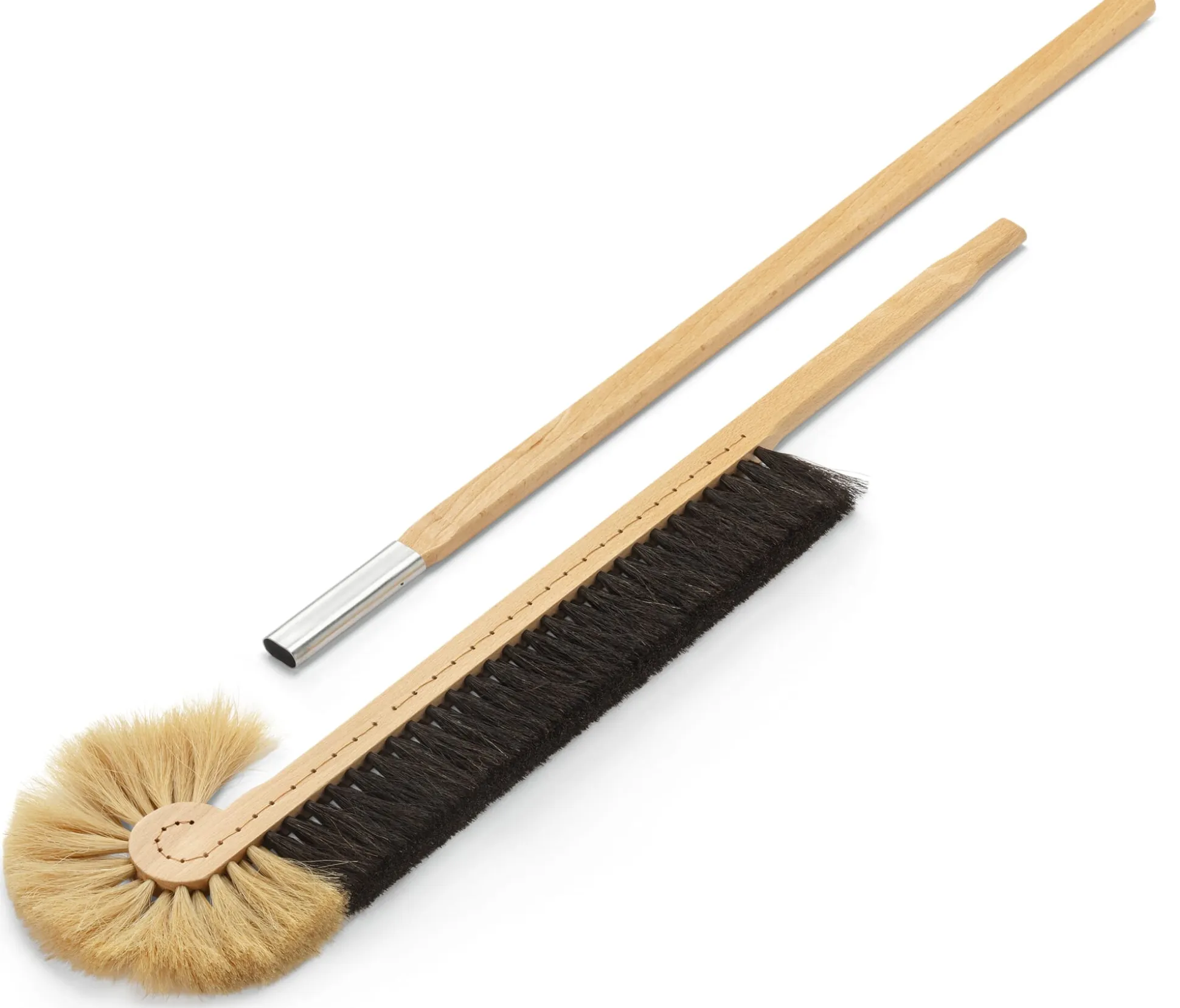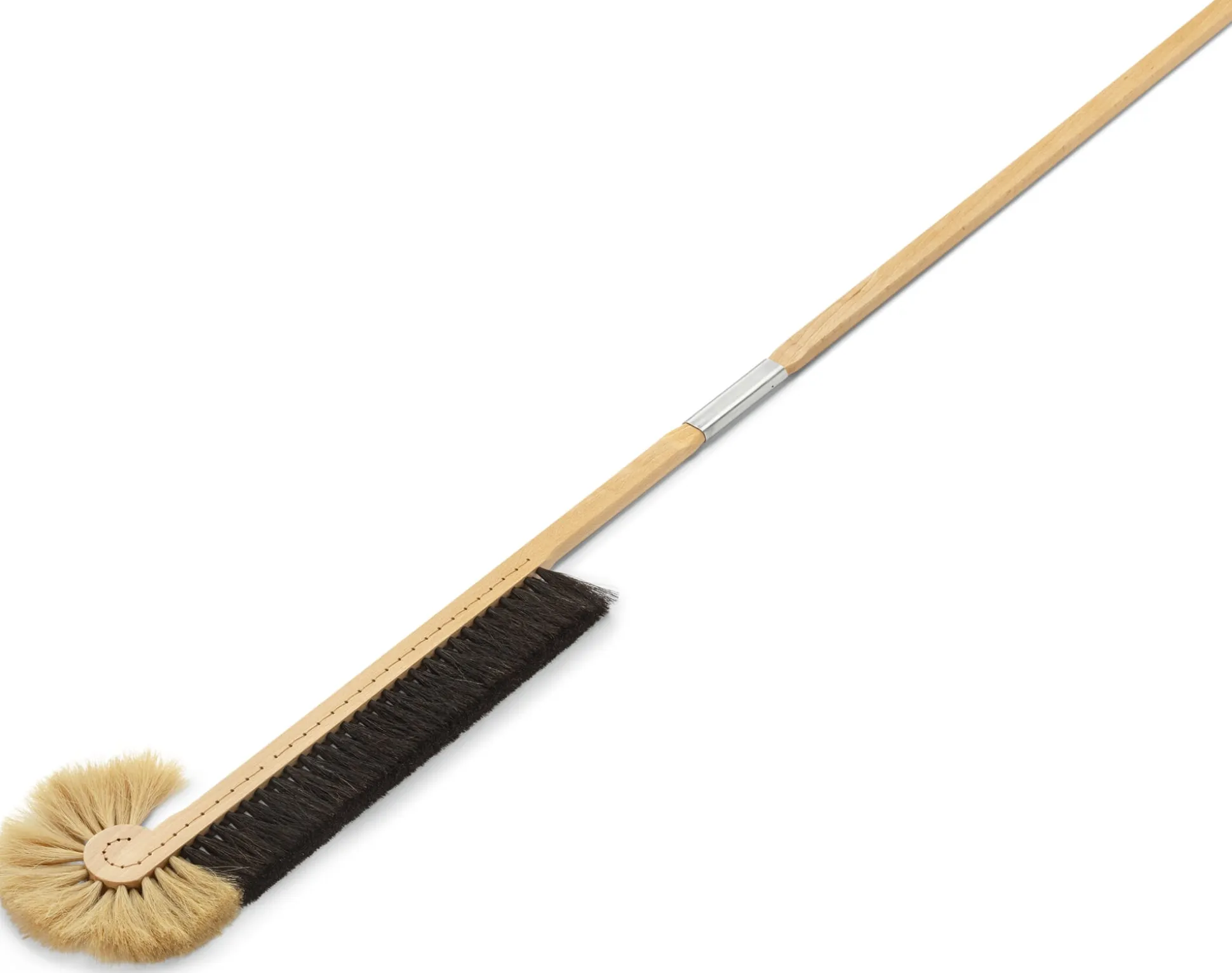 Ein Schrankbesen in der traditionellen Form, aber mit einer doppelt so starken Besteckung wie sonst üblich: Statt mit einer wird der Besen mit zwei Borstenreihen gefertigt. Die so entstehende feste, breite Bürste aus reinem Rossschweifhaar nimmt problemlos Staub und Spinnweben hinter Schränken, in schmalen Nischen oder von Wänden auf. Mit zweiteiligem Stiel für eine große Reichweite.