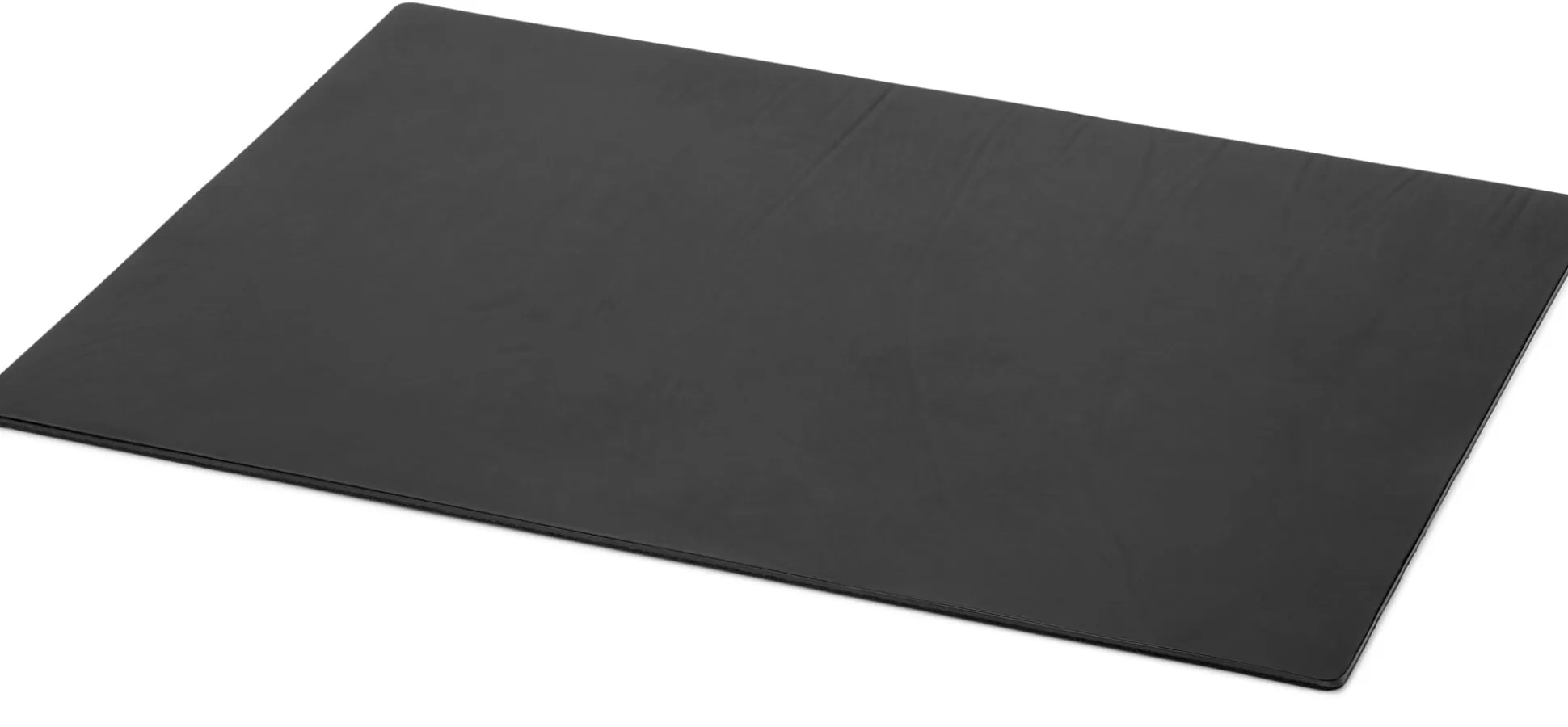 Schreibtischunterlage Rindhalsleder, vegetabil gegerbt. Unterseite Zellkautschuk. Schwarz. Nicht nur das Material, auch die Größe ist hervorhebenswert: 50 × 70 cm. Gewicht 1,1 kg. Lieferung ohne Schreibutensilien.
