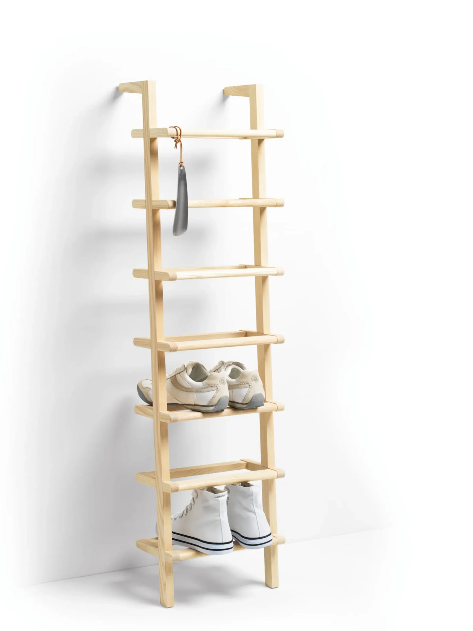 Material: Esche, unbehandelt (Herkunft: Deutschland); Schuhlöffel: Aluminium, Schnur: Rindleder