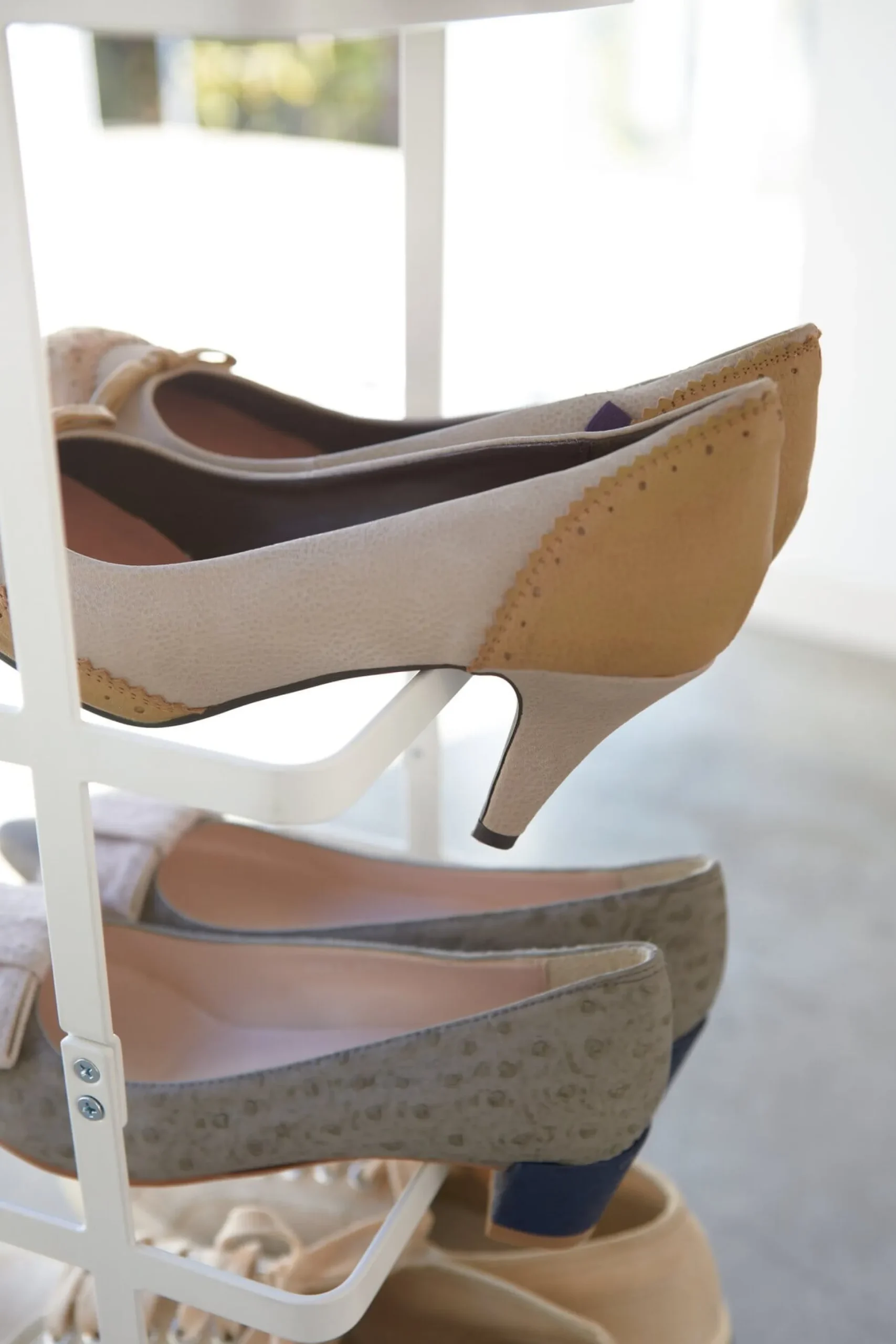 Das Regal bietet Platz für fünf Paar Schuhe.