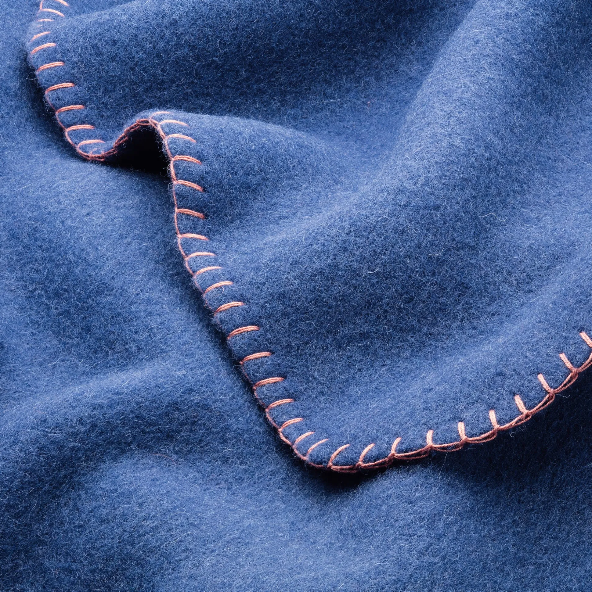 Um die Decke noch voluminöser und weicher zu gestalten, erhält die Oberfläche auf mit Naturdisteln bestückten Rollkarden-Raumaschinen einen sogenannten Rauflor. Der ringsum verlaufende, kontrastfarbene Kettelstich wird von einer alten, selten gewordenen Kettelmaschine durchgeführt.