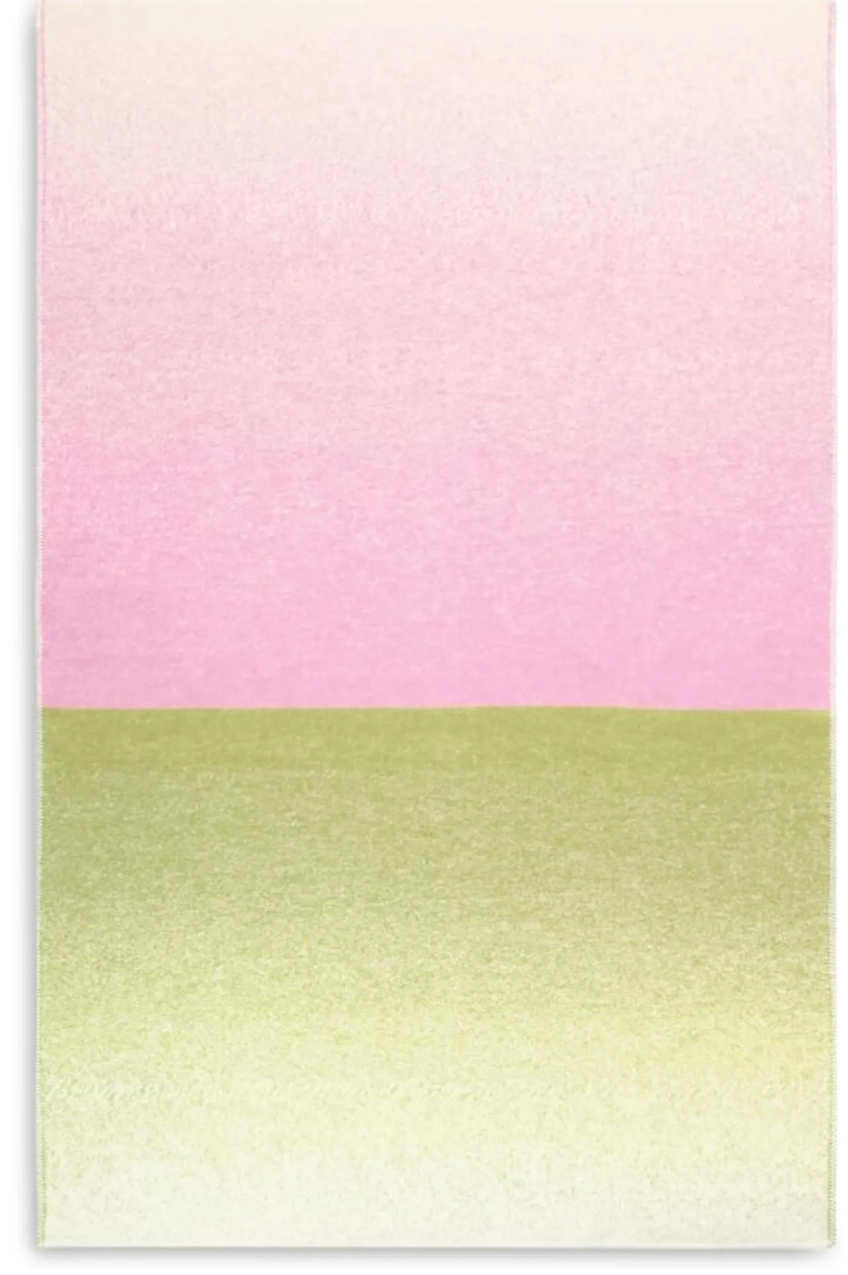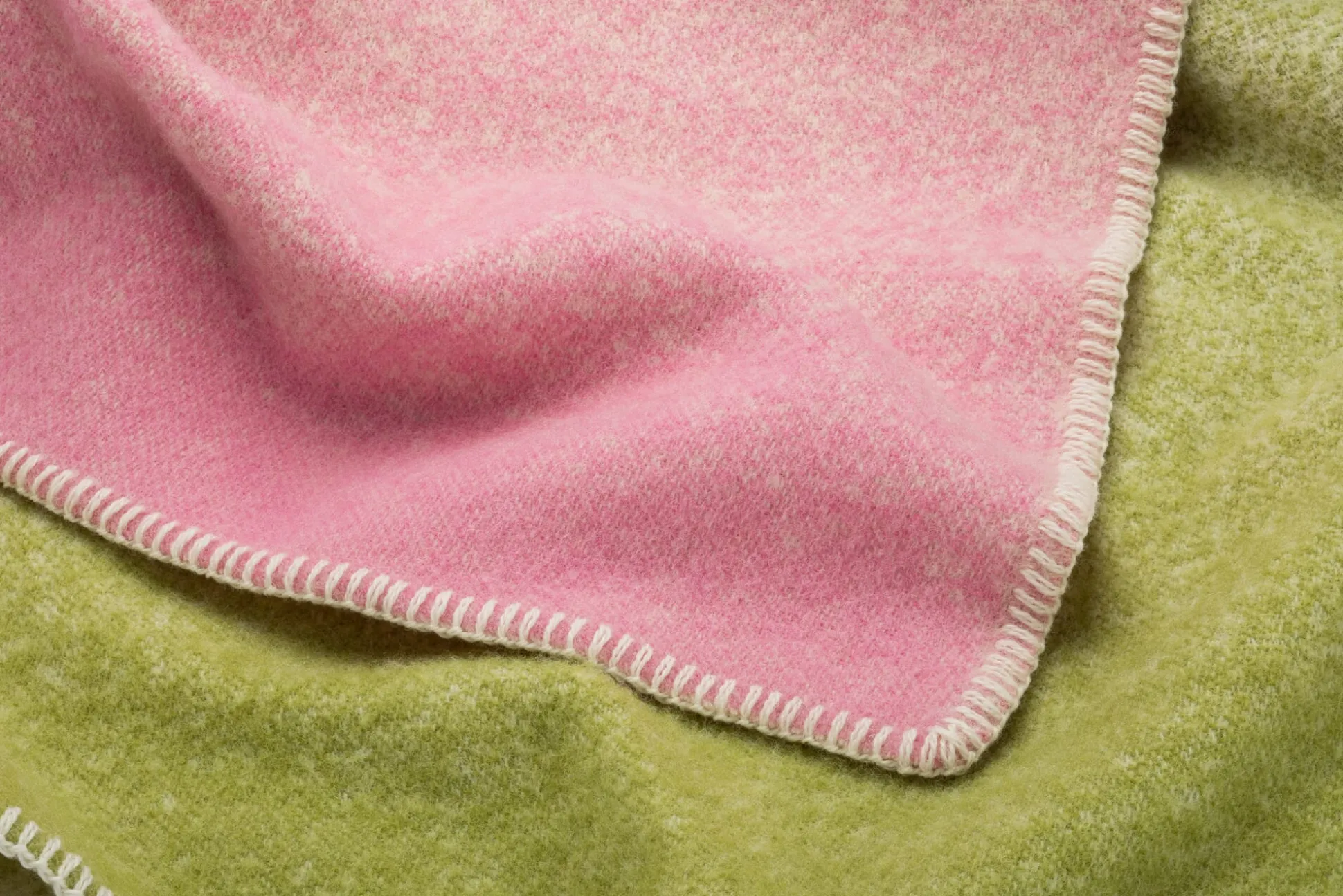 Griffig, weich und voluminös – mit diesen Decken aus neuseeländischer Schurwolle haben Sie es nicht nur warm, sondern auch farbenfroh auf dem Sofa. Die Wolldecken werden auf Jacquardwebstühlen gewebt, das erlaubt doppeltes Spiel mit den Farben: Auf der einen Seite nimmt die Farbintensität zur Mitte hin zu, wo Blau und Gelb beziehungsweise Rosa und Grün kontrastierend aufeinandertreffen. Auf der anderen Seite nimmt die Intensität der Farben zur Mitte hin ab. Sie haben also die Wahl, ob sich die Decke mit farbstarkem Akzent oder sanftem Farbverlauf präsentieren soll, wenn Sie darunter Ihren Nachmittagsschlummer halten. Dank ihrer Größe von 130 × 200 Zentimetern ist die Decke dafür wie gemacht. Unempfindlich und strapazierbar, eignet sie sich jedoch ebensogut für die kühlen Abendstunden im Garten und auf der Terrasse. Die Kanten sind mit einem festen Kettelstich in naturfarbenem Wollgarn versehen, der für Formtreue sorgt.