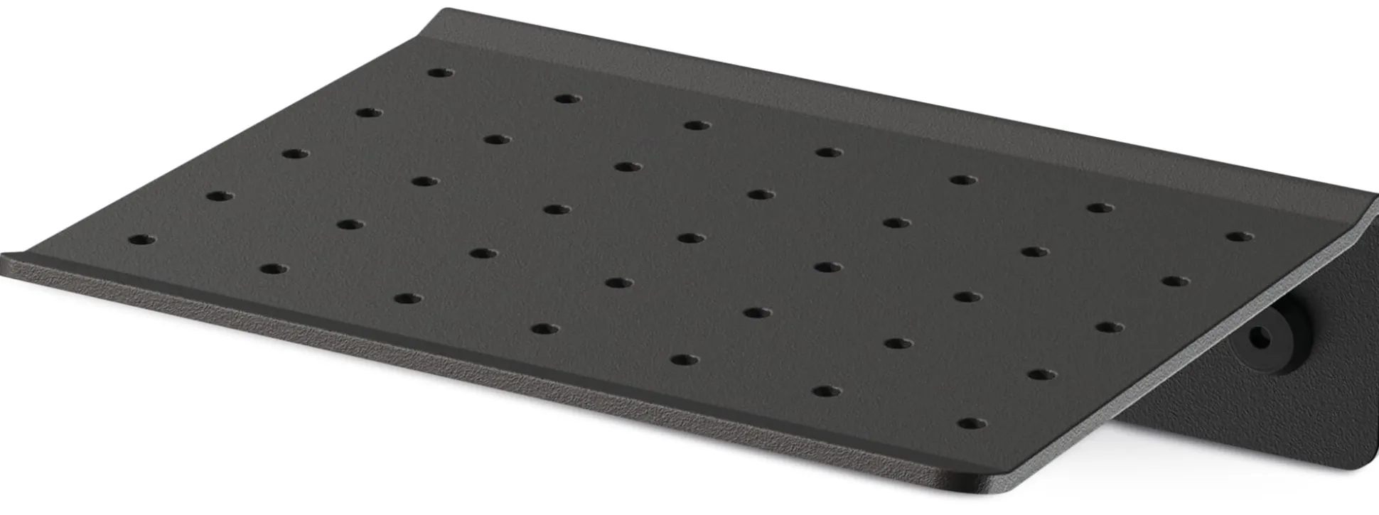 Grafisch-schöne Seifenablage zur Wandmontage aus gelochtem und gekantetem Aluminium. Die großzügige Fläche bietet ausreichend Platz zum komfortablen Ablegen von Seifenstücken, die Löcher in der Fläche sorgen für das Abtrocknen der nassen Seifen. Die Pulverbeschichtung verleiht der Ablage eine robuste, wasserfeste Oberfläche.