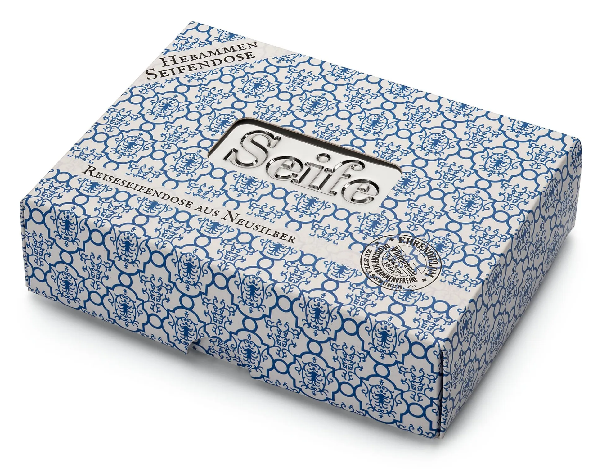 Viele Jahre schlummerte eine Seifendose wie diese unbeachtet als Ausstellungsstück N° 2008-003-017 in der Medizinhistorischen Sammlung der Christian-Albrechts-Universität zu Kiel. Bis ein Maschinenbau-Ingenieur sie auf seiner langen Suche nach einem stabilen und langlebigen Behältnis für Seife entdeckte und aus ihrem Dornröschenschlaf erweckte. Das schicke Ausstellungsstück war ursprünglich Bestandteil eines Hebammen-Koffers aus den 1890er Jahren, den das Wiesbadener Fachgeschäft für Hebammen-Bedarf Gottlob Kurz anbot. Kaum dass der neuzeitliche Ingenieur es in Händen hielt, stand fest: So etwas muss man wieder produzieren. Eine Materialanalyse unter dem Fluoreszenzmikroskop ergab, dass es sich bei dem Material um Neusilber handelt (Edelstahl wurde erst 1912 von Krupp entwickelt). Charakteristisch für die korrosionsbeständige Legierung aus Kupfer, Nickel und Zink ist der schöne Silberglanz, weshalb sie früher oft als Alternative zu Silber für Besteck, Musikinstrumente, Beschläge und Schmuck verwendet wurde.