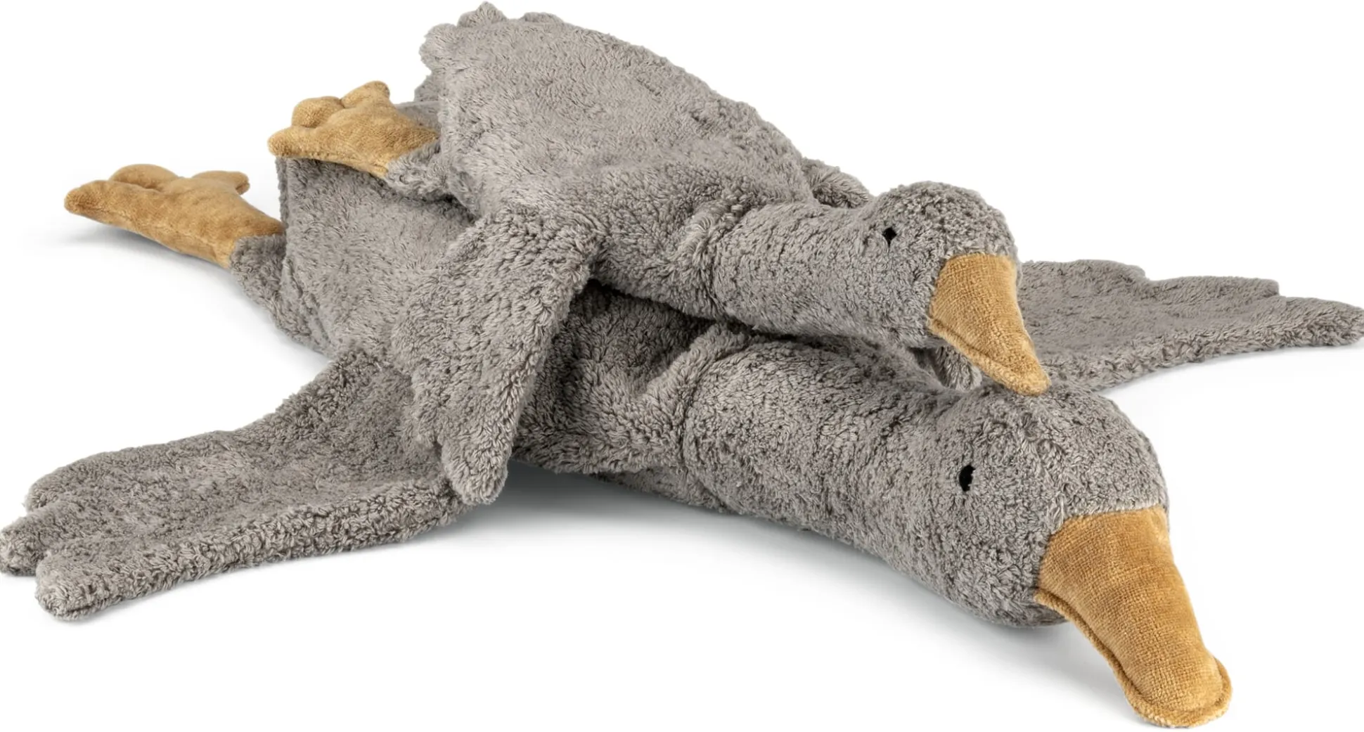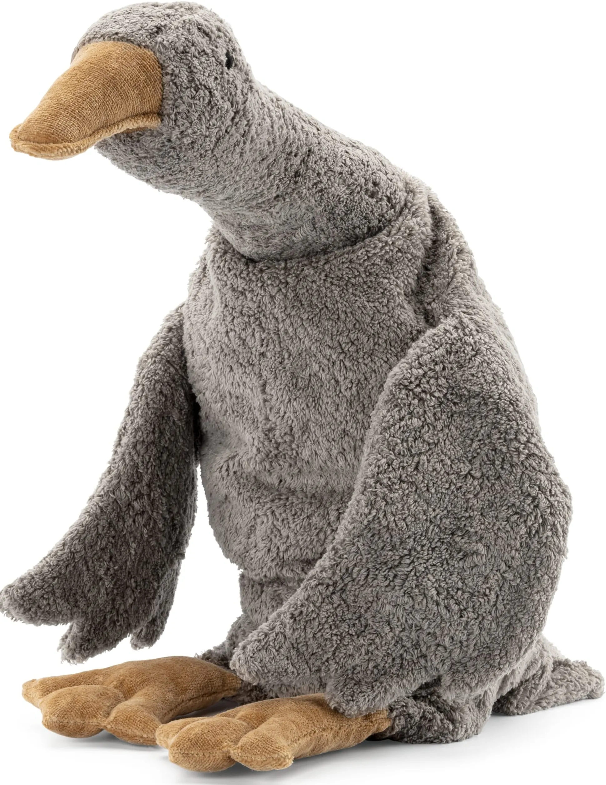 Schmusetier, Kissen und Wärmflasche in einem, ist die Gans mit ihrem lang gestreckten Hals in besonderem Maß dafür prädestiniert, als eine Art lieb gewonnenes „Beutestück“ an der Gurgel gepackt und über den Boden gezogen zu werden. Im Inneren des Entenvogels befindet sich ein herausnehmbares Baumwollkissen, das bei dem großen Tier mit Dinkelspreu, bei dem kleinen mit Traubenkernen gefüllt ist. Erwärmt kann Dinkelspreu unter anderem gegen Bauchschmerzen helfen, Traubenkerne können neben dem Wärmen auch zum Kühlen eingesetzt werden. Das Dinkelspreu- oder Traubenkernkissen sollte vor dem Erwärmen auf der Heizung, dem Kachelofen oder im Backofen (maximal handwarm) aus dem Tier genommen und in ein Baumwoll- oder Leinentuch gewickelt werden.