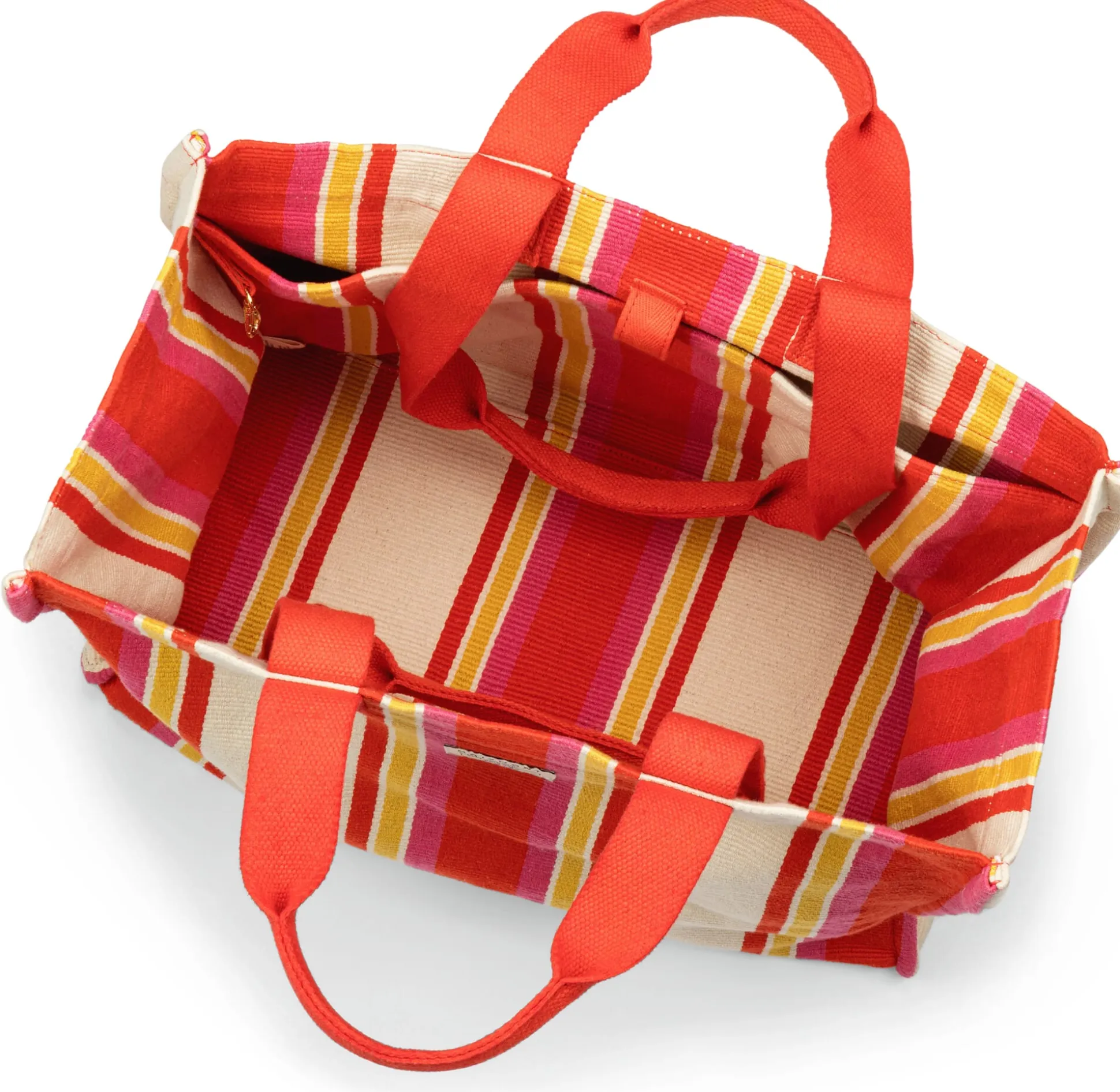 Ein Leichtgewicht mit erstaunlicher Tragkraft: In fester Ripsbindung gewebt, nimmt dieser voluminöse Shopper Ihre Einkäufe vom Wochen- oder Supermarkt getreulich auf. Für durablen Halt sorgen zusätzlich der verstärkte Boden und der obere Saum, ebenso sind die Tragegriffe und -riemen für gewichtige Aufgaben gemacht. Die Griffflächen der Henkel und Gurte sind außerdem abgenäht, sodass sie komfortabel in der Hand und auf der Schulter liegen. Der tief ausgelegte Boden ermöglicht Ihnen, den Shopper auch einmal zu Ihren Füßen abzustellen, wenn Sie die Vollständigkeit übersichtlich platzierter Einkäufe prüfen oder beschwingt gestikulierend mit dem Bazar-Händler feilschen möchten. Im Innern sortieren eine große Seitentasche mit kleinem Druckknopfriegel sowie ein an der Kante eingefasstes, schmaleres Steckfach Ihre Essentials wie Sonnenbrille, Handy und Portemonnaie; ein kleiner Karabinerhaken hält Ihren Schlüssel schnell auffindbar. Für die Reise lässt sich der Shopper klein zusammenlegen, um am Zielort die gewünschten Utensilien für Strand, Hamam oder Besichtigung aufzunehmen.