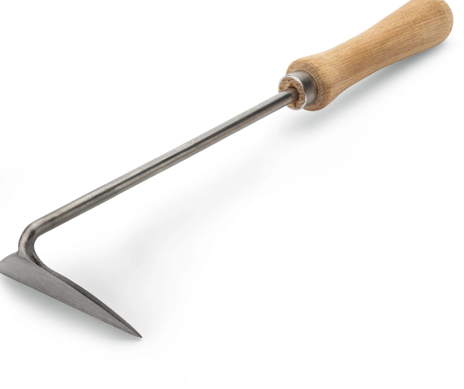 Geschmiedet bei Sneeboer in den Niederlanden: Dieser Handjäter mit geschärfter Edelstahlklinge verfügt über ein schmales, punktgenau zu setzendes Blatt, mit dem sich der Boden zugleich aufreißen und lockern lässt. Die einem Dreieck ähnliche Blattform kennen wir auch von der japanischen Sichelhacke. Unser Tipp: Mit der Jäthacke können Sie auch flachwurzelnde Unkräuter wie Vogelmiere und Franzosenkraut unterschneiden und somit zwei Aufgaben in einem Zug erledigen. Ebenso ist die Jäthacke perfekt geeignet, um insbesondere im Hochbeet Saatreihen oder (tiefere) Saatfurchen zu ziehen. Bei alldem unterstützt der Handgriff aus dem von uns für Werkzeugstiele bevorzugten, „mitschwingenden“ Eschenholz, der passgenau angefertigt wird.