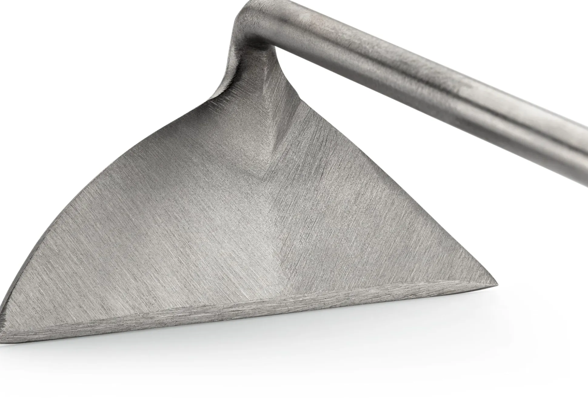 Handhacke: Klinge 10 × 4 cm. Gesamtlänge 35 cm. Gewicht 210 g.