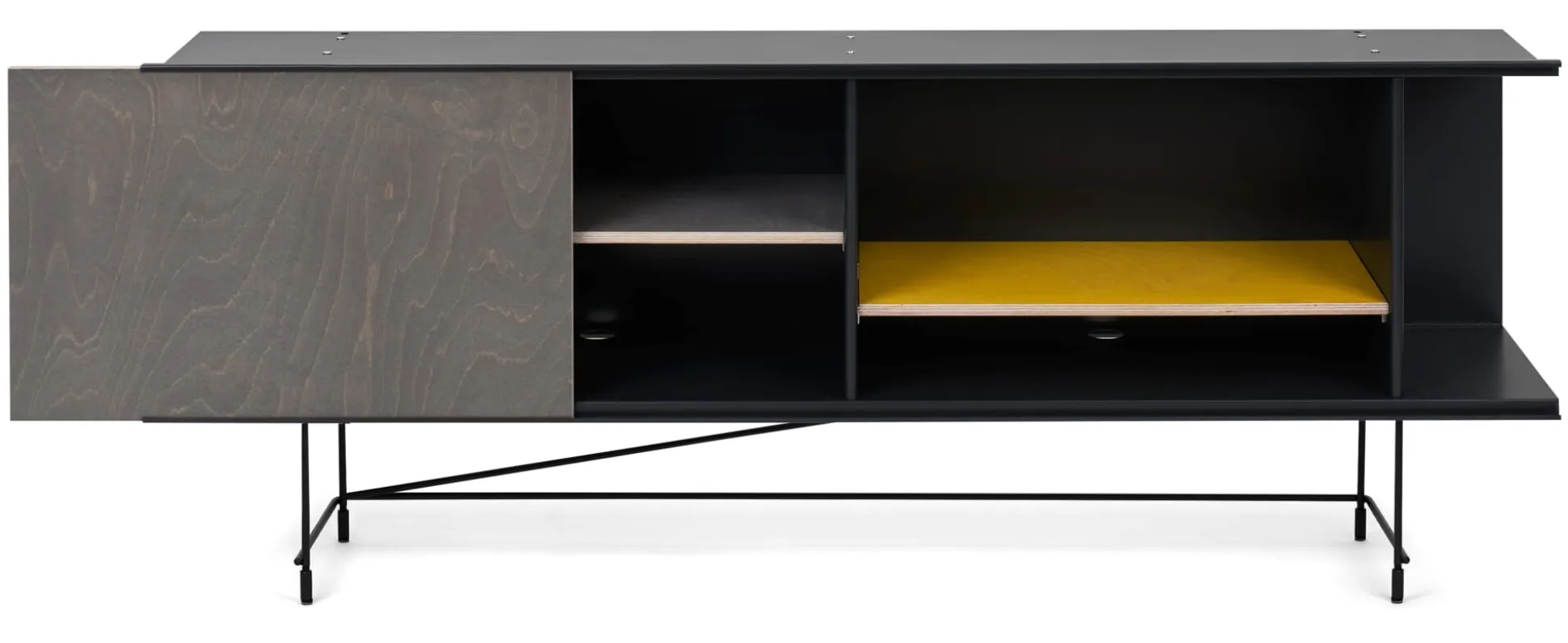 Korpus: Der Korpus ist das Herzstück von FIP. Er kann mit der Wandschiene als Regal an die Wand montiert werden oder mit dem Sockel zum Sideboard kombiniert werden.