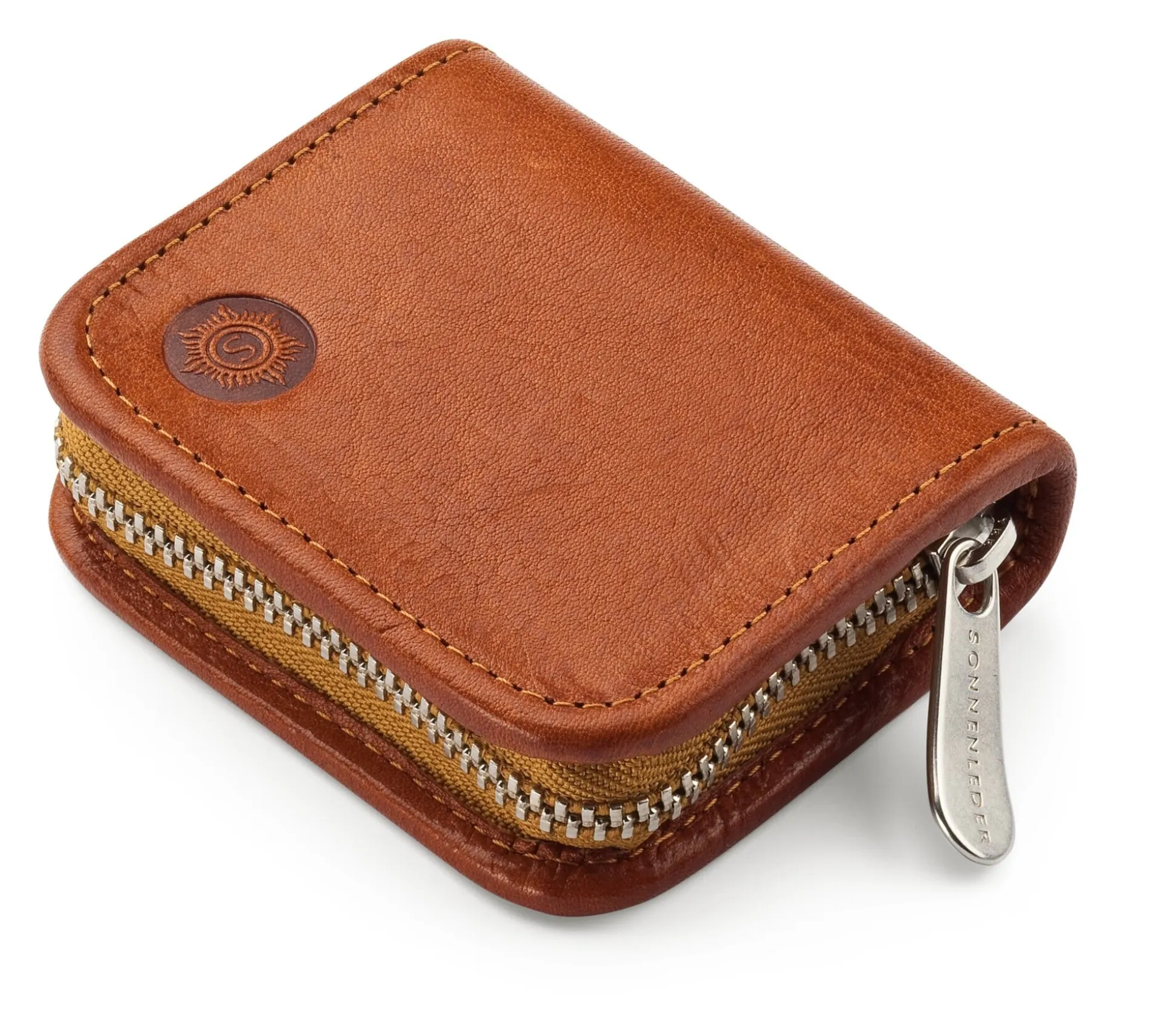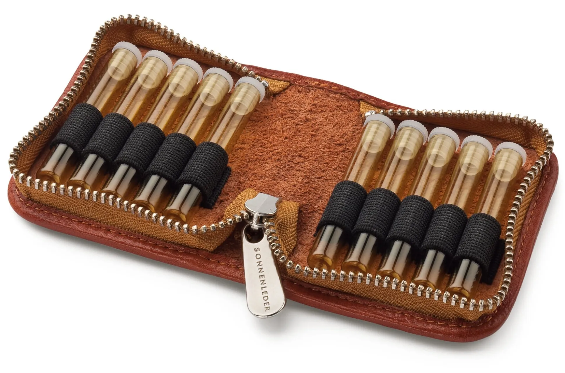 Klein. Reißverschluss Messing, matt vernickelt. Mit 10 Glasröhrchen.