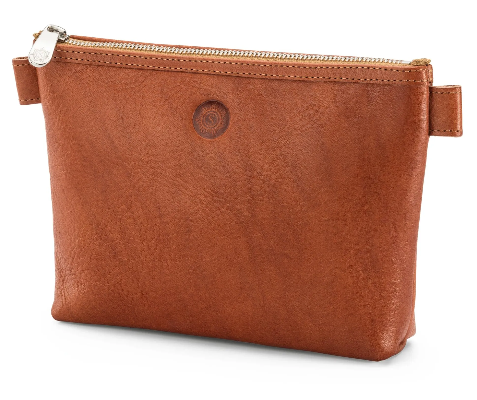 Die kleine Kosmetiktasche ist aus dem wunderbar weichen, grubengegerbten Rindleder, das Sonnenleder auch für die handschmeichelnden Handtaschen verwendet. Es passt also nicht nur optisch und haptisch zu den schönen Stücken, sondern ist auch in der Größe auf sie abgestimmt. Dabei ist es noch groß genug, um Kosmetika oder auch andere Kleinteile aufzunehmen und so für Ordnung in der Tasche zu sorgen – manche nennen diese Art Kosmetiktäschchen deswegen auch Aufräumer –, aber auch klein genug, um eben in der Tasche nicht zu viel Platz einzunehmen.