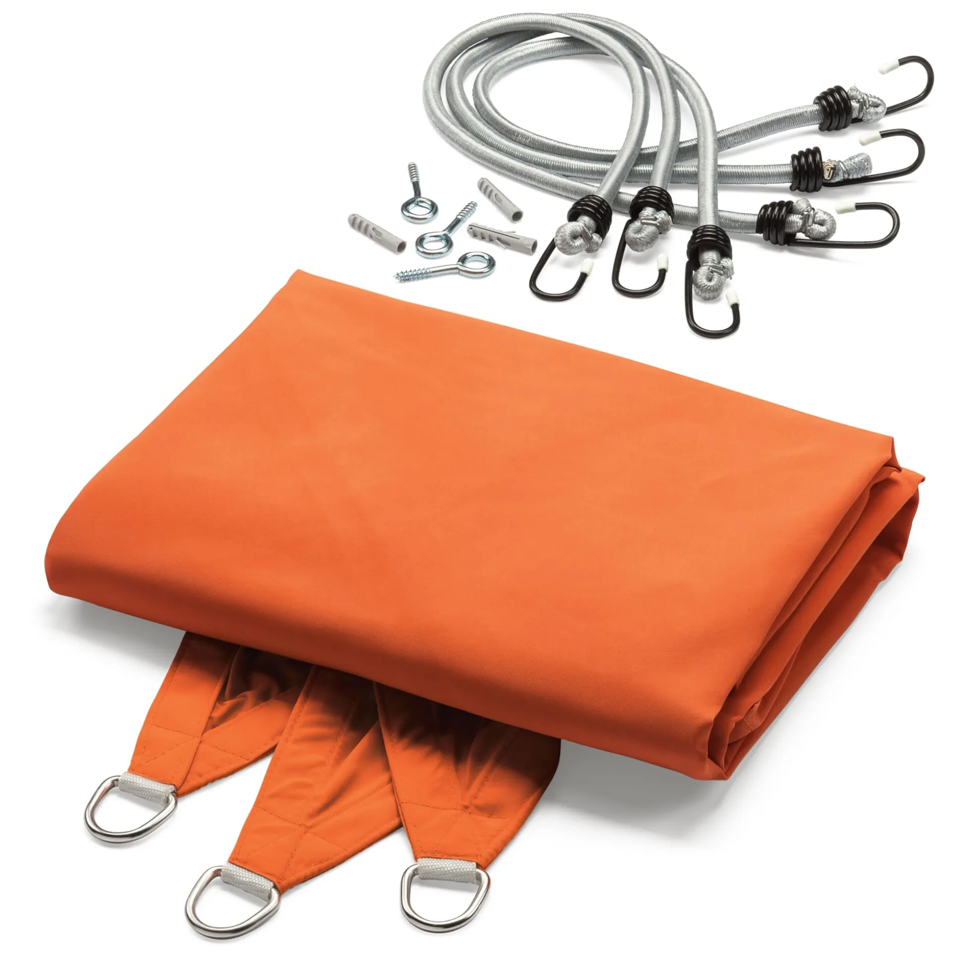 Dauerelastische Spanngurte lassen das Sonnensegel immer gut aussehen und schützen es vor harten Windböen. Das gesamte Kleinmaterial ist im Lieferumfang enthalten.