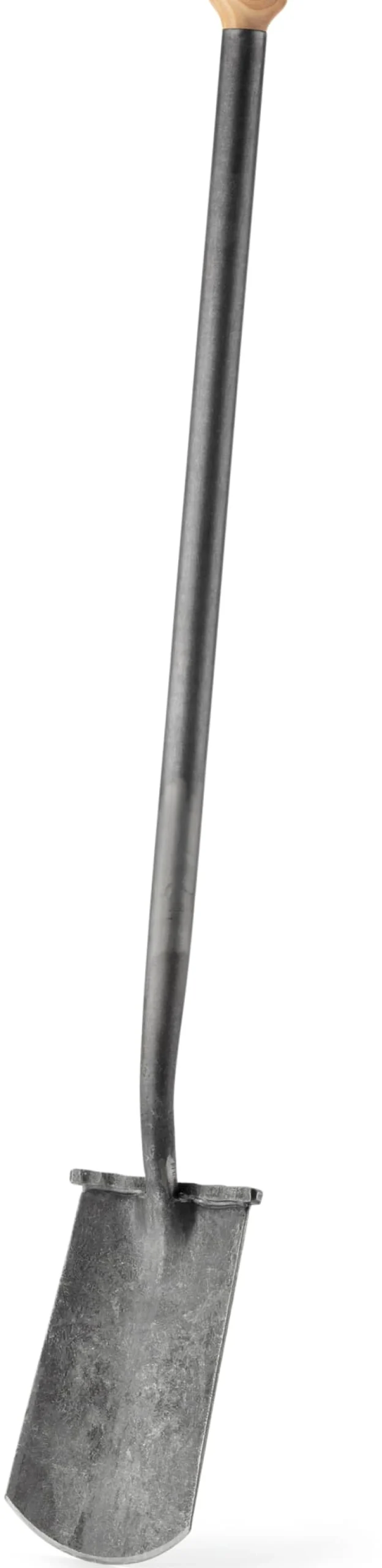 Ein besonders starkes Stück ist dieser Spaten in Form des „englischen Gartenspatens“: Er besteht vollständig aus solidem Stahl – mitsamt Stiel. Damit hält der Spaten dauerhaft höchsten Belastungen stand. Und da ein Übergang von Holzstiel zu Tülle entfällt, können Sie auf den Stahlspaten sogar große Hebelkraft ausüben, ohne dass er zu biegen oder brechen droht. Zusätzliche Arbeitserleichterung verschafft der Eschenholz-Knauf des Stahlstiels: Diese Konstruktion lässt sich bestens umfassen und erlaubt Ihnen, von oben besonders kraftvoll Druck auf den Spaten auszuüben – nicht von ungefähr wird ein solcher „Knaufgriff“ auch im Straßenbau sehr geschätzt. Zum Schutz Ihrer Schuhsohlen bei so viel optimaler Kraftübertragung verfügt das geschärfte Blatt dieses Stahlspatens über angeschmiedete Tritte.
