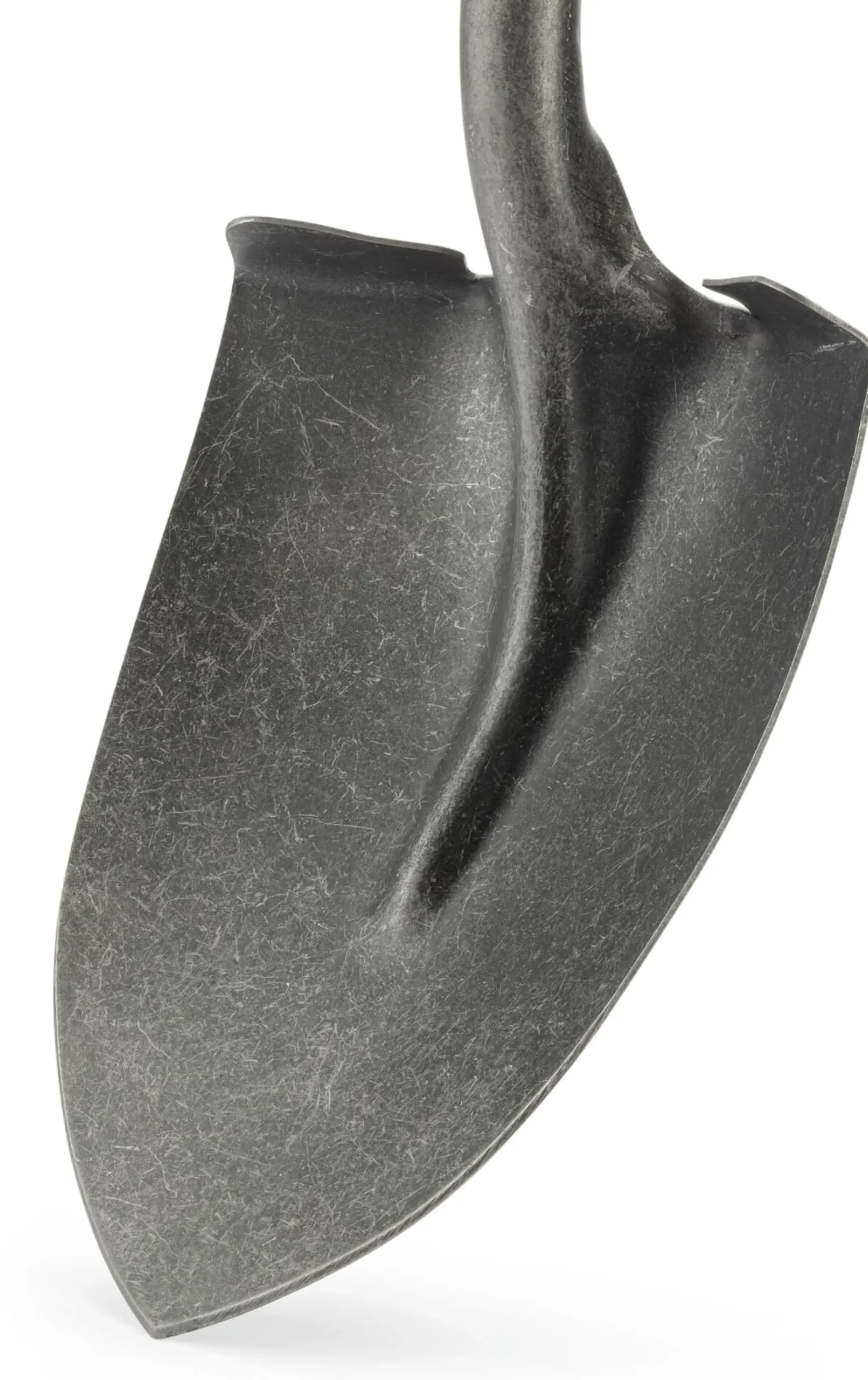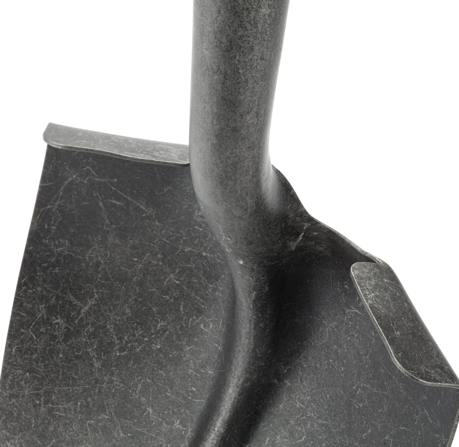 Blatt (L 28 × B 21,5 cm) aus Mangan-Bor-Stahl geschmiedet. Stiel Eschenholz (Herkunft Europa) lackiert. Mit T-Griff (Breite 12 cm). Gesamtlänge 122 cm. Gewicht 1,7 kg.