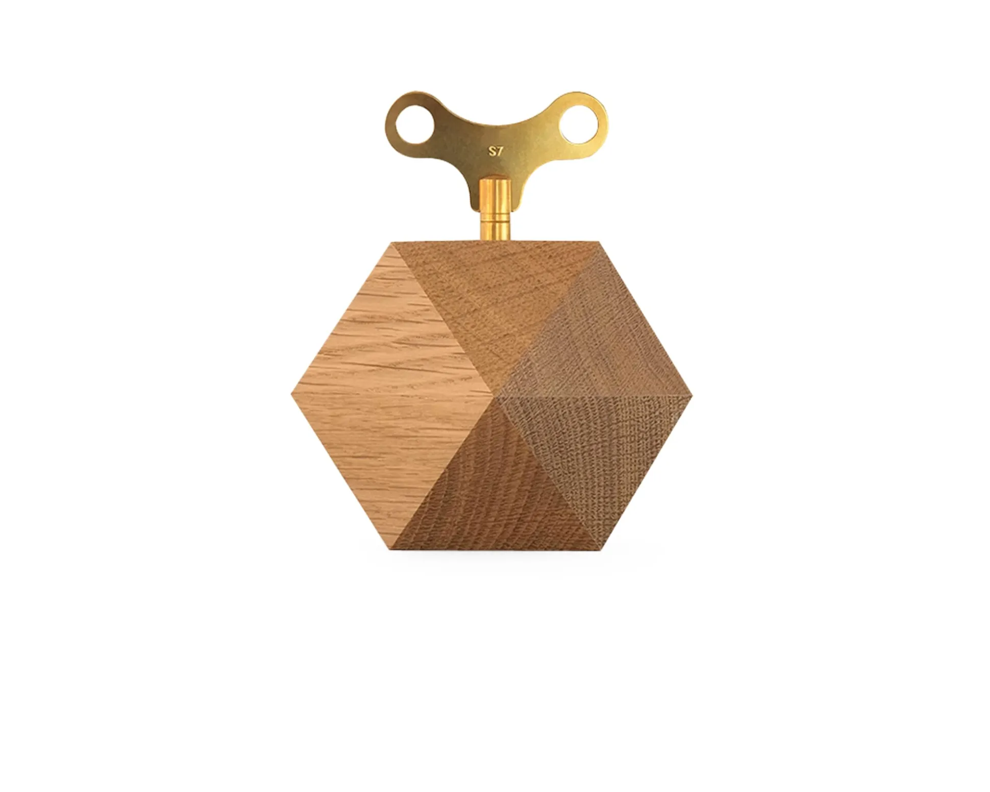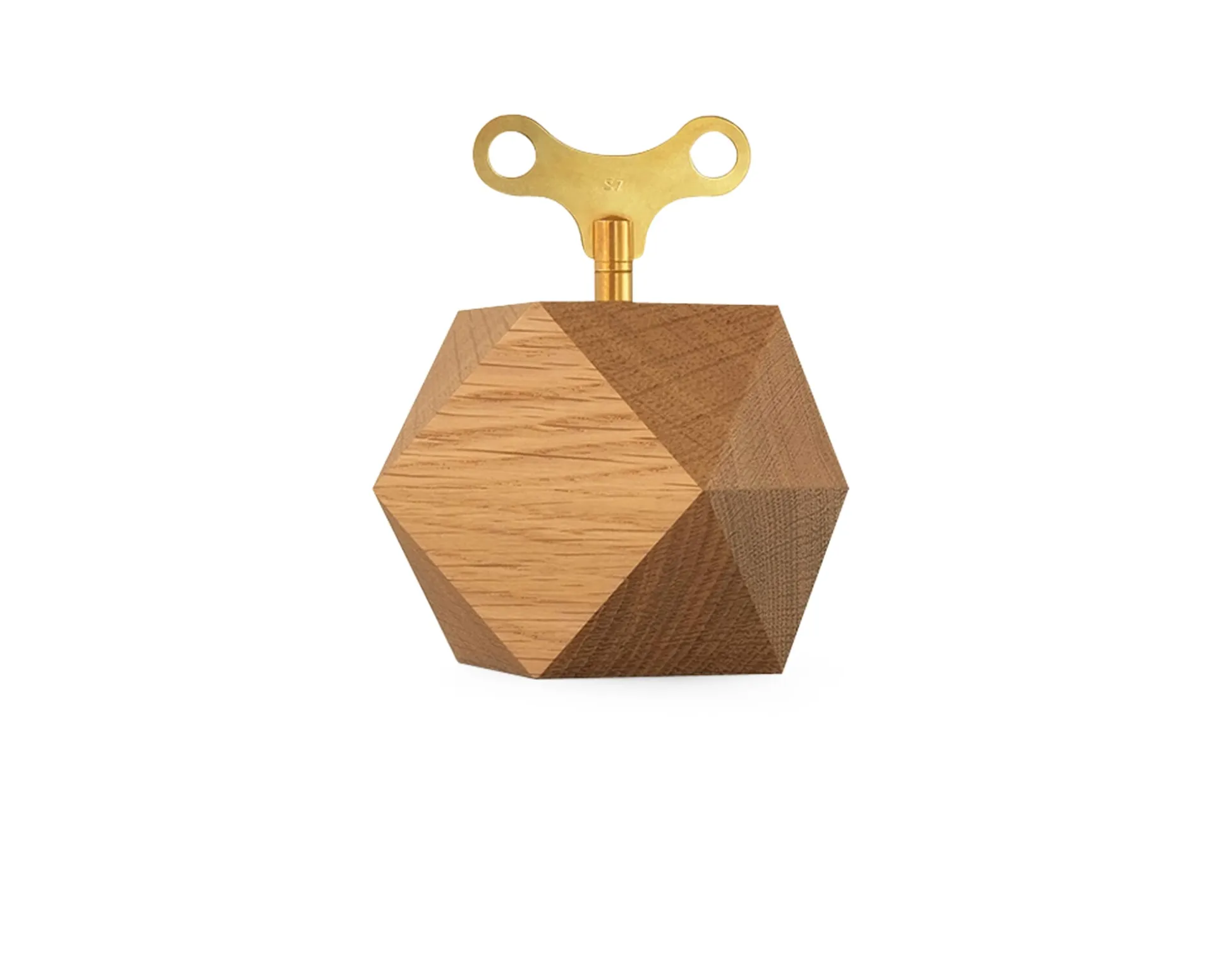 Durch den Facettenschliff erhält ein Rohdiamant seine einzigartige Aura. Die raffinierte geometrische Form der Spieluhr DIAMOND zitiert dieses jahrhundertealte Kunsthandwerk und macht sie so zum handschmeichelnden Objekt. Das achtzehnstimmige Musikwerk spielt die Melodie „Je te veux“ – ein Chanson des französischen Komponisten Erik Satie. Mit goldenem Schlüssel zum Aufziehen.