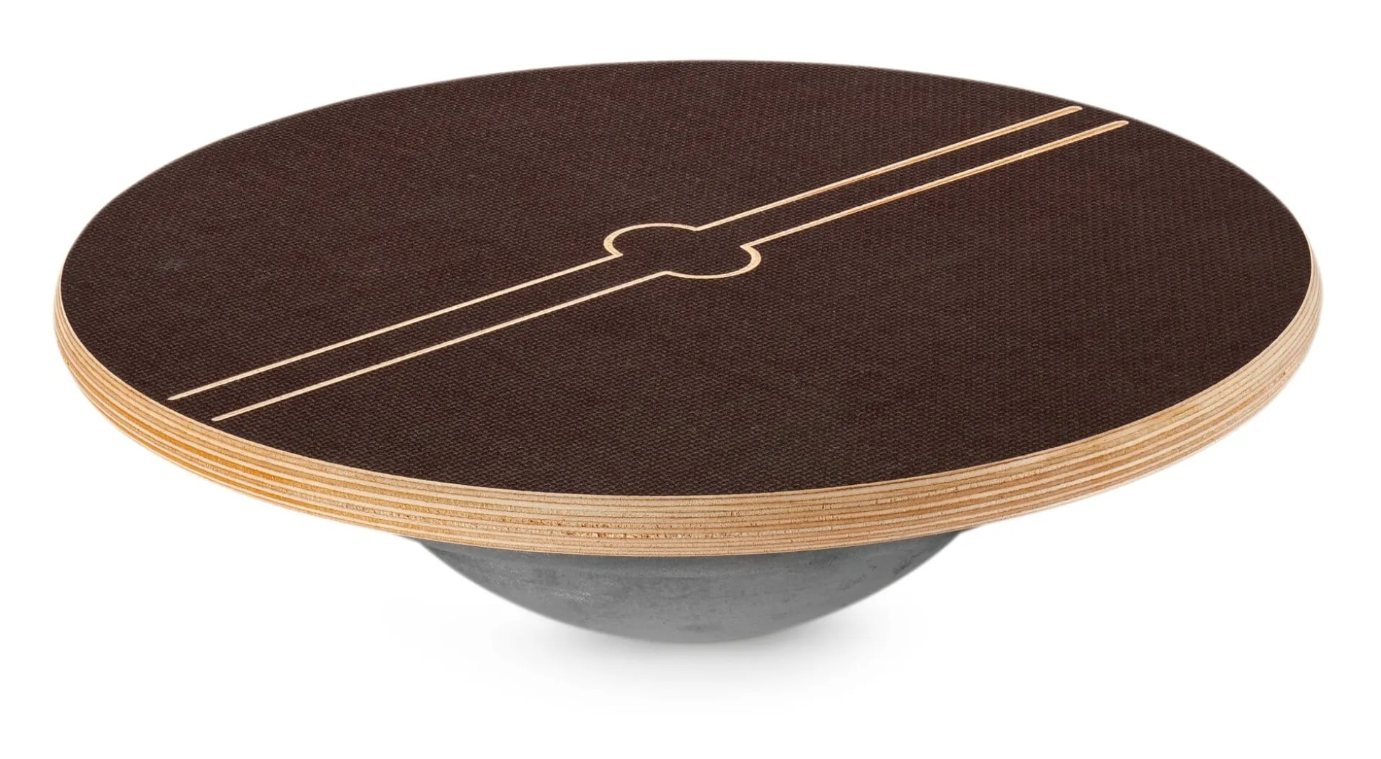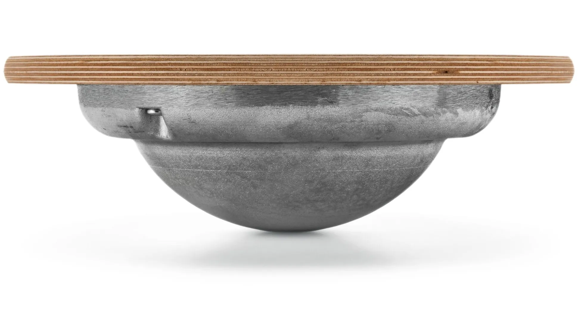 Auflageplatte Schichtholz (Stärke 1,7 cm), mit Siebdruckplatte beschichtet. Halbkugel Aluminium mit Stahlkern. Höhe 11,5 cm, Ø 36,5 cm. Gewicht 3,5 kg. Belastungsgewicht max. 120 kg. Mit Übungsanleitung und passender Schaumstoffunterlage.
